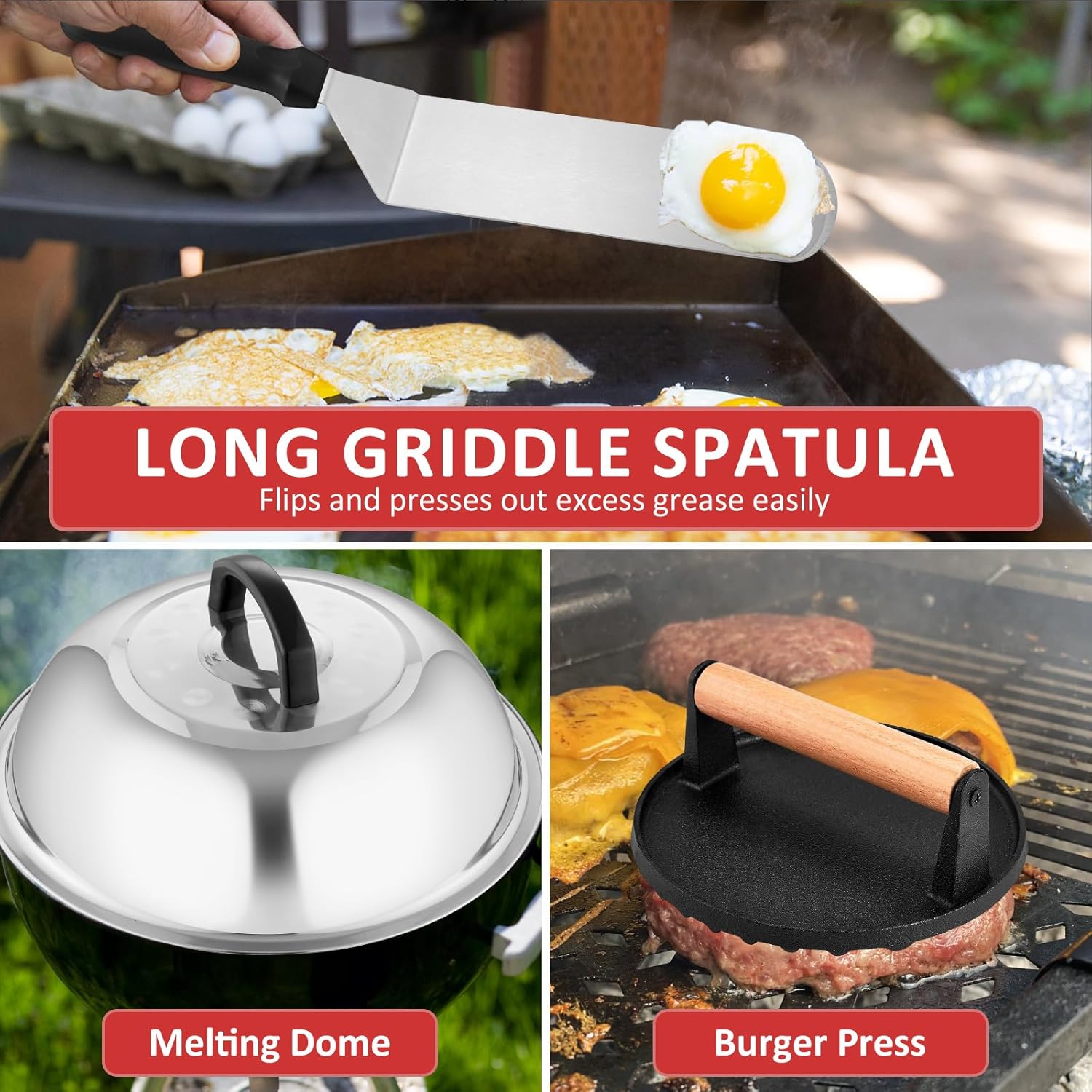 - PREFERRED CHOICE & IDEAL GIFT, flat top grill accessories for novice to expert grillers, making it easy for you to navigate all kinds of cooking challenges to enjoy grilling and cooking to the fullest. Beautifully wrapped package is an ideal gift for friends, lovers, family, and like-minded barbecue enthusiasts, suitable for any flat top grill, iron plate or cast iron grill