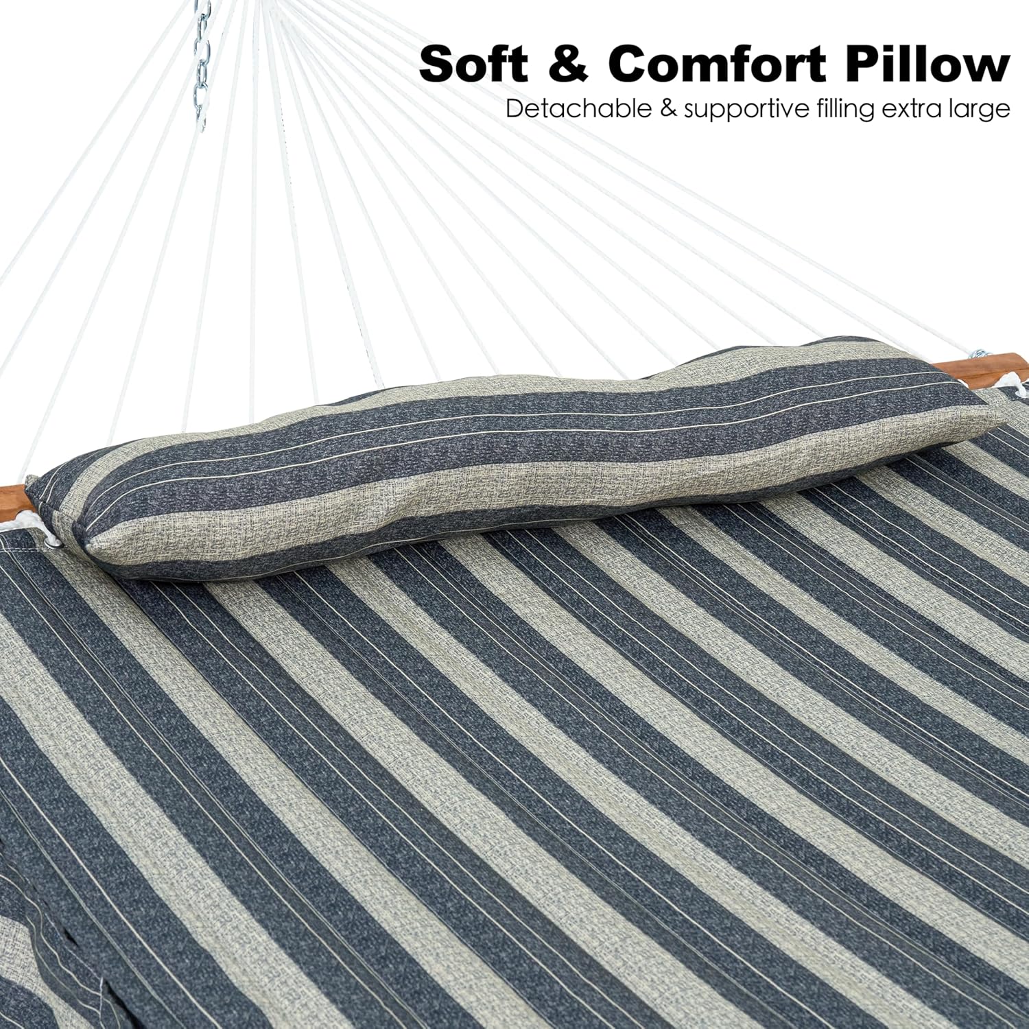 2 Person Hammocks for Outside, Double Quilted Fabric Outdoor Hammock with Spreader Bar, Large Removable Pillow, Storage Pockets, Carabiners, Max 475 lbs Capacity (Slate Grey)