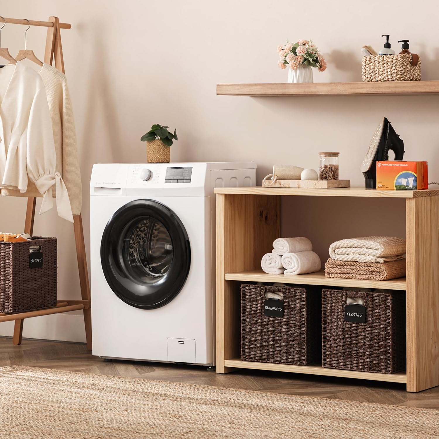 UBBCARE 4 Pack Wicker Basket, 12×12 Storage Cubes with Label, Foldable Cube Storage Bin with Handle, Square Storage Basket for Shelves, Woven Paper Rope Basket for Organizing, Brown