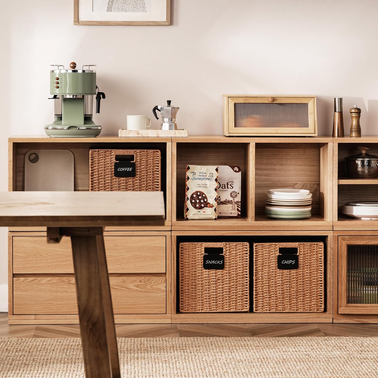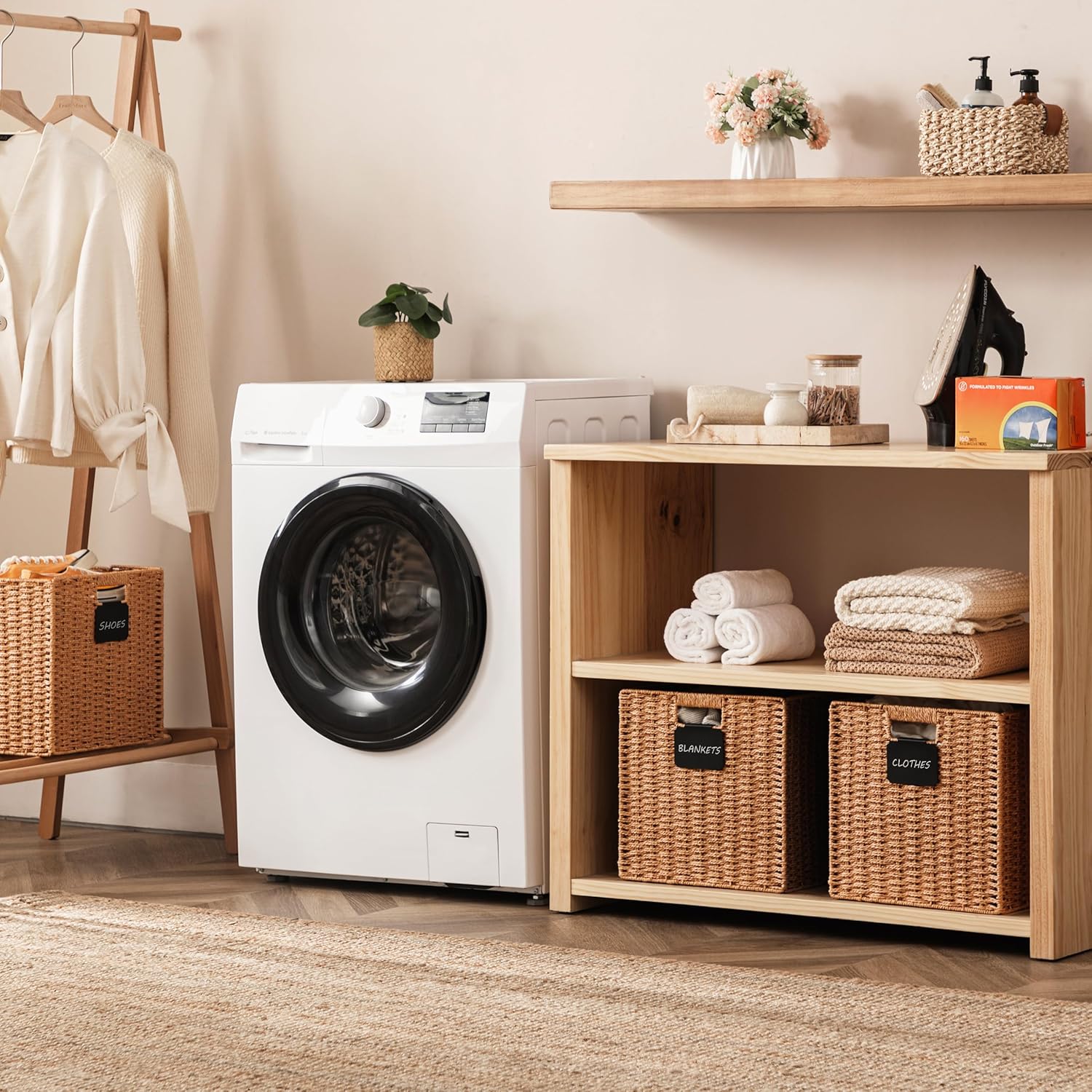 UBBCARE 2 Pack Wicker Basket, 10.5×10.5 Storage Cubes with Label, Foldable Cube Storage Bin with Handle, Square Storage Basket for Shelves, Woven Paper Rope Basket for Organizing, Caramel