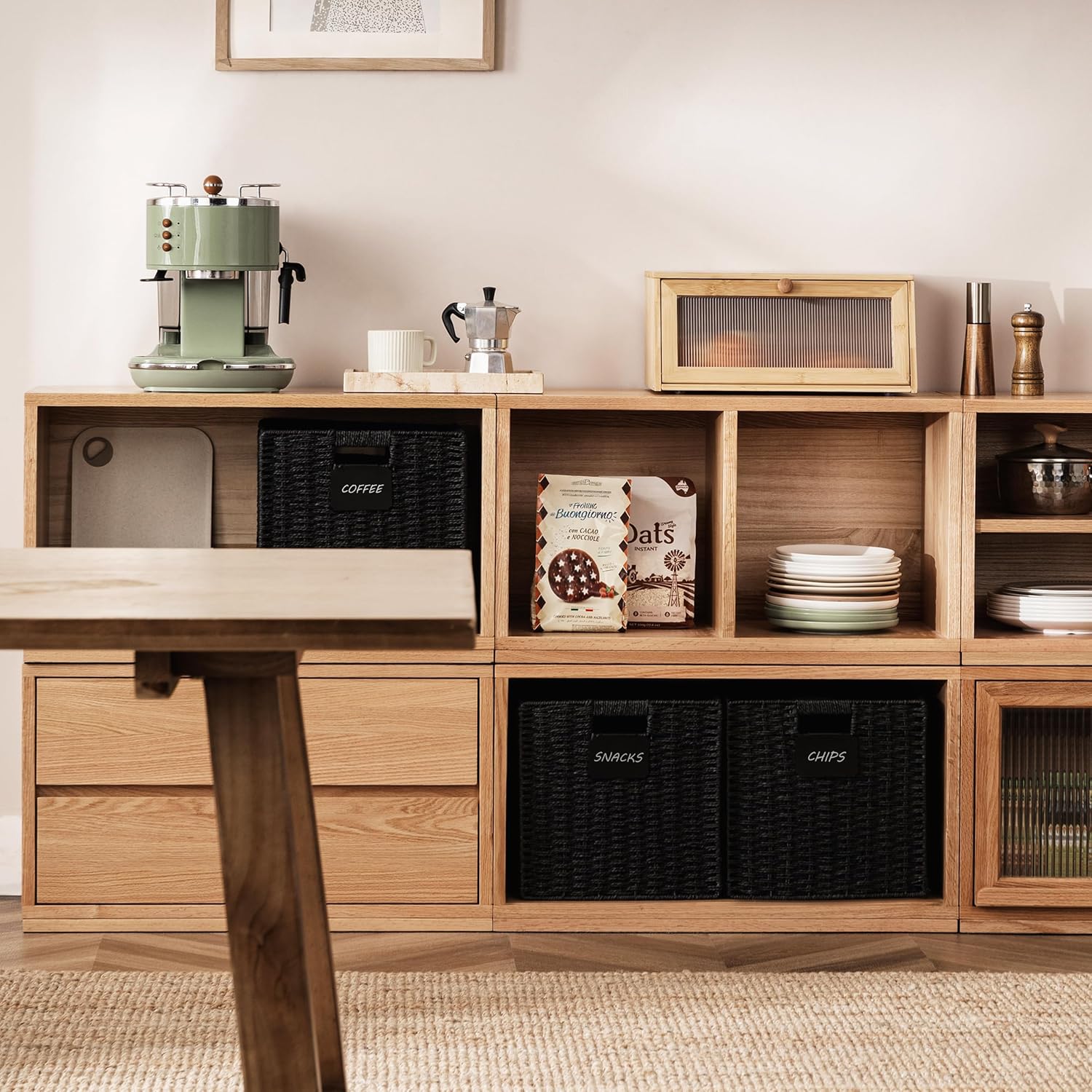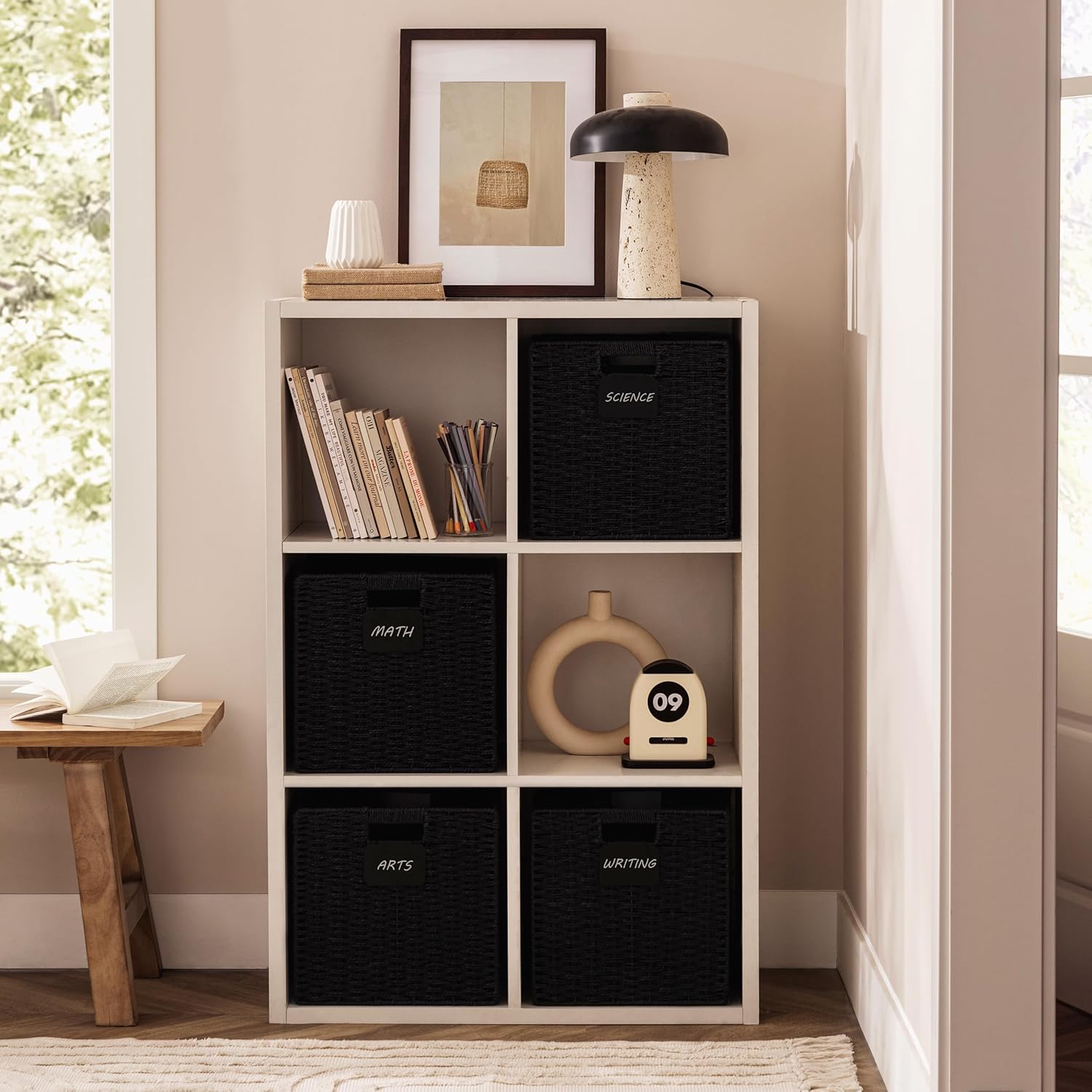 UBBCARE 2 Pack Wicker Basket, 13×13 Storage Cubes with Label, Foldable Cube Storage Bin with Handle, Square Storage Basket for Shelves, Woven Paper Rope Basket for Organizing, Black