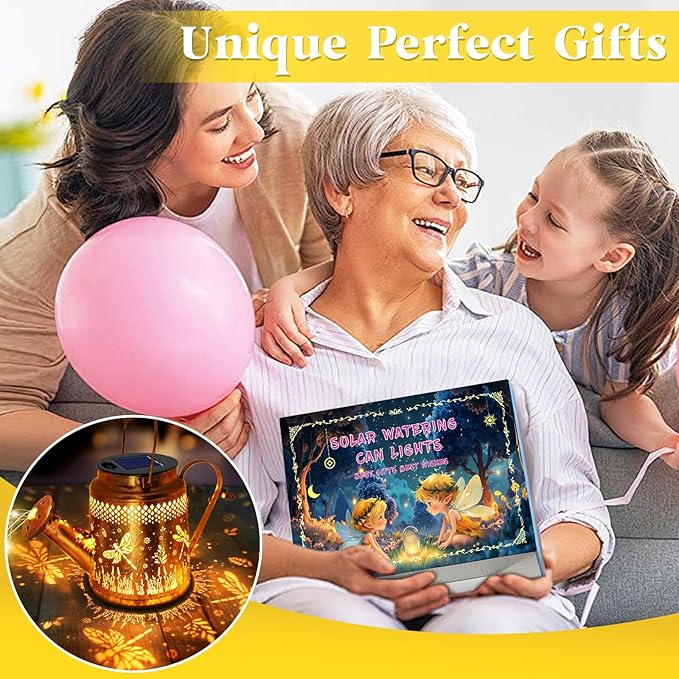 - Mom Gifts Solar Garden Lights -- This solar watering can with cascading lights is a perfect decoration for garden, yard, lawn, porch, patio, pathway, walkway, terrace, and balcony. You can place this outdoor decor for patio on the ground with the included Shepherd Hook to decorate your plants, vines, flower bed, or just hang it on a tree or placed on the tabletop