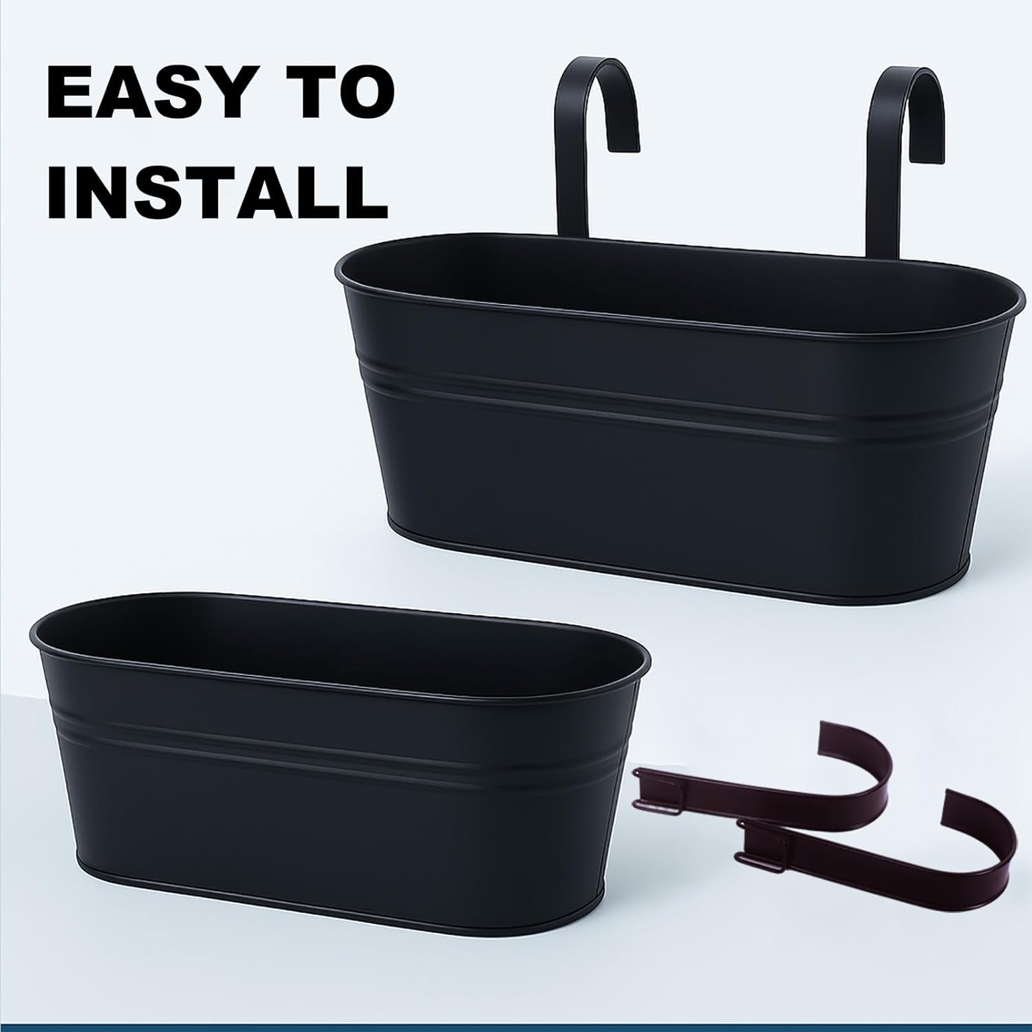 - XL Size, Double the Harvest – Grow strawberries AND mint in these balcony planters railing hanging giants! Each 16" elongated deck planters gives roots room to breathe. The textured black finish blends with garden style—pair with wrought-iron chairs for that perfect countryside afternoon tea vibe