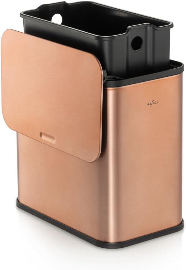 RedFactor Stainless Steel Hanging Trash Can with Lid and Inner Bucket – Slim 1.3 Gallon Odor-Free Compost Bin for Kitchen Cabinet, Countertop, Under Sink, or Bathroom (Copper)