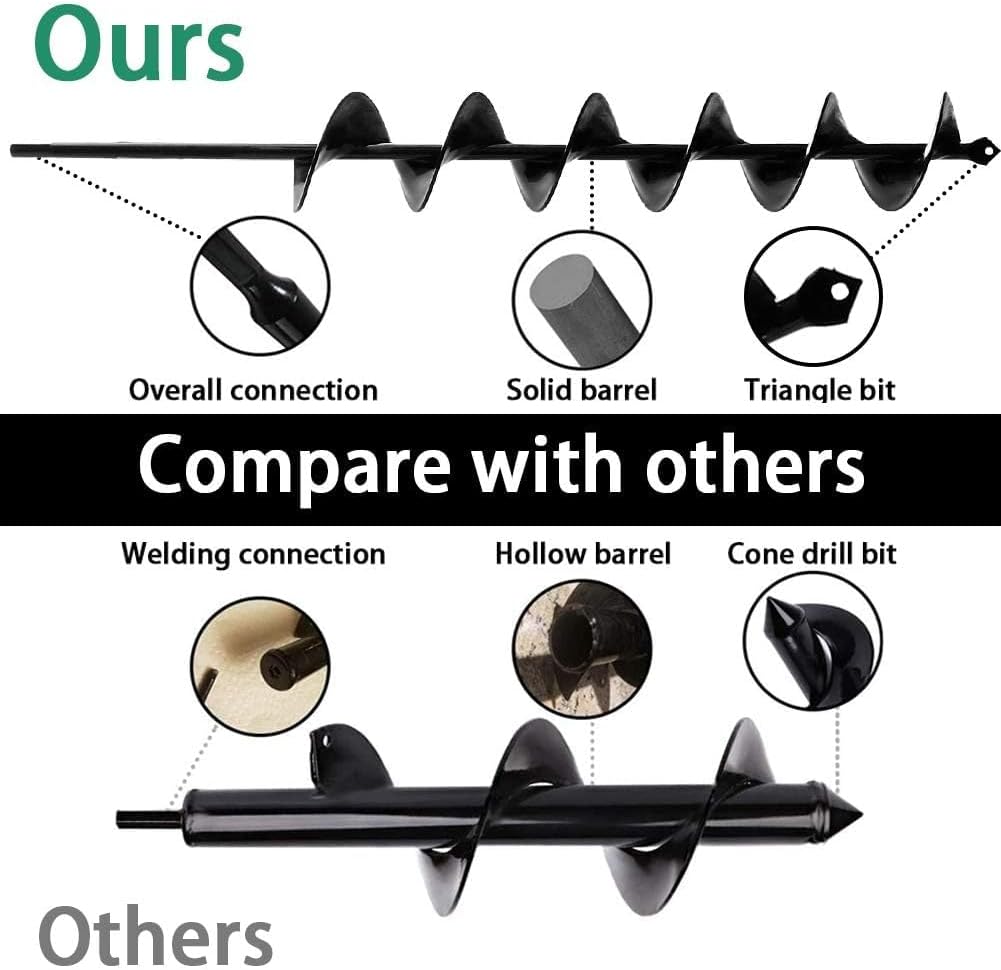 - 【High-Efficiency Planting】Our auger drill bit for planting significantly boosts your gardening efficiency, allowing you to drill a hole in under a minute. This rapid pace transforms tedious planting tasks into quick and easy work, letting you spend less time digging and more time enjoying your garden. Perfect for busy gardeners who want to maximize their productivity.