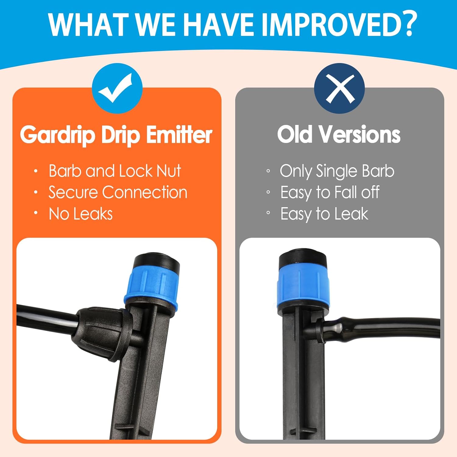 - UV-STABILIZED MATERIAL FOR LONG LIFE: Made of high quality & UV resistant plastic material,Gardrip drip irrigation emitters assure long life in the landscape. And the dripper cap are detachable and very easy to clean. Don't worry about clogging