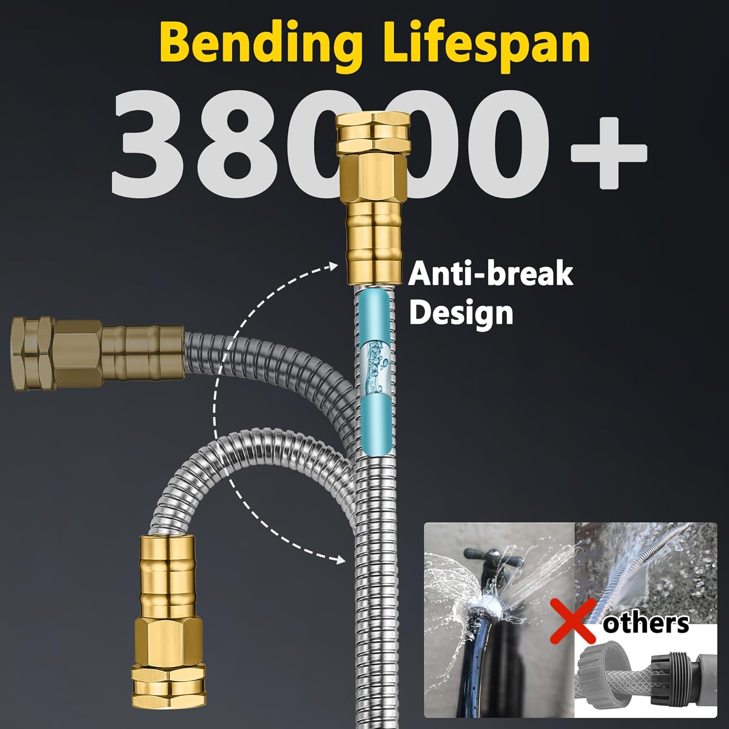 - Super Durable &No More Leaks: The 2025 upgraded garden hose is made of the high-quality stainless steel, 3/4 inches 100% solid brass connector, extremely functional, lightweight and flexible, durable. The hose will less kink, twist, leak, burst or get tangled up while in use.