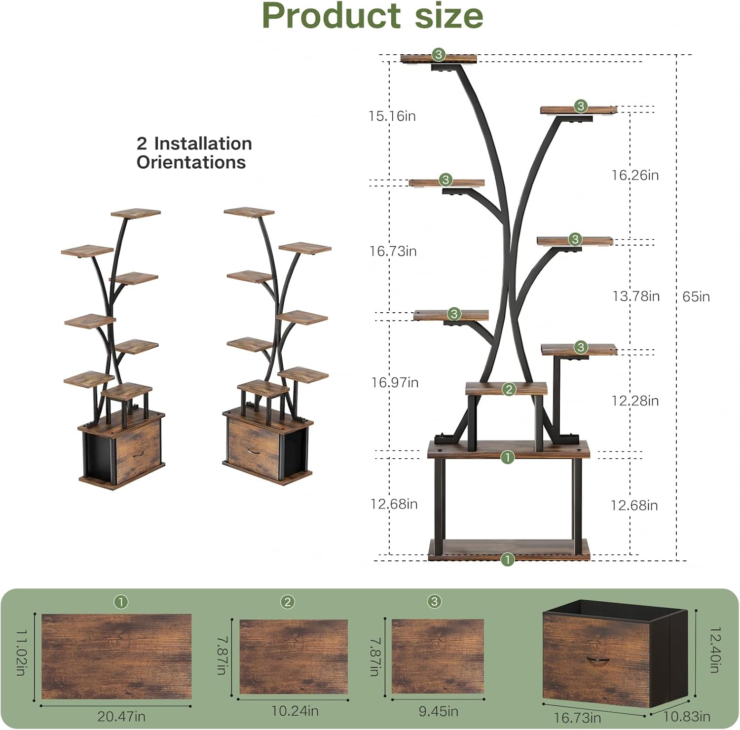 - 【Space-Saving Design】The 65" tall plant stand indoor with 9 staggered tiers, 9 pot stands, which can easily accommodate large potted plants, small succulents or home decorations, helping you save floor space while fully displaying plant collection. Our upgraded plant shelf with grow light have a removable waterproof drawer to store your gardening tools. The bottom is equipped with non-slip adjustable-height feet pads to adapt to uneven ground, and enhance the stability of the plant holder.