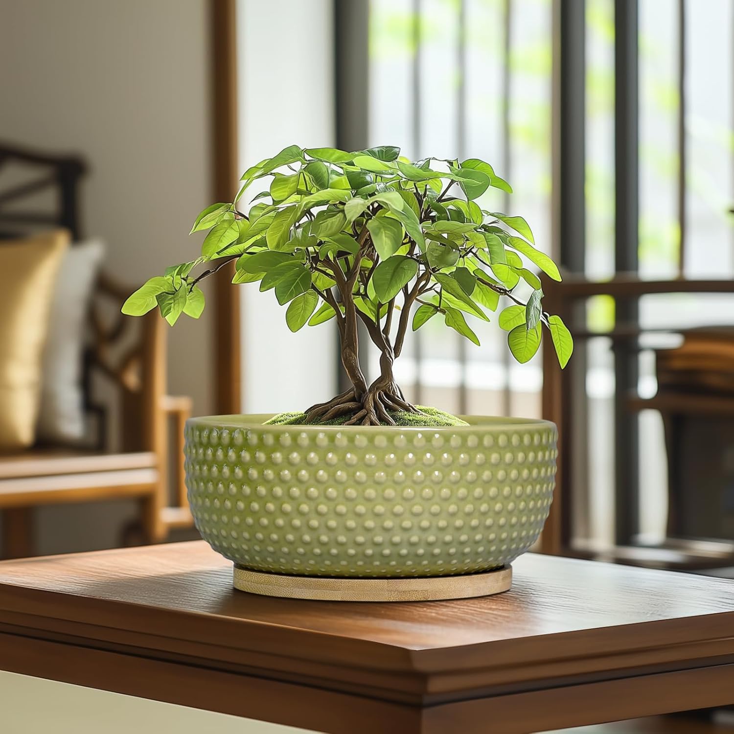 - Planter Design: This bonsai pot features a textural, raised dot design in a modern style, adds decorative appeal and a fashionable touch to indoor spaces, making it suitable for home decor and garden decor, bringing a relaxing and pleasant experience(NOT INCLUDE PLANT)
