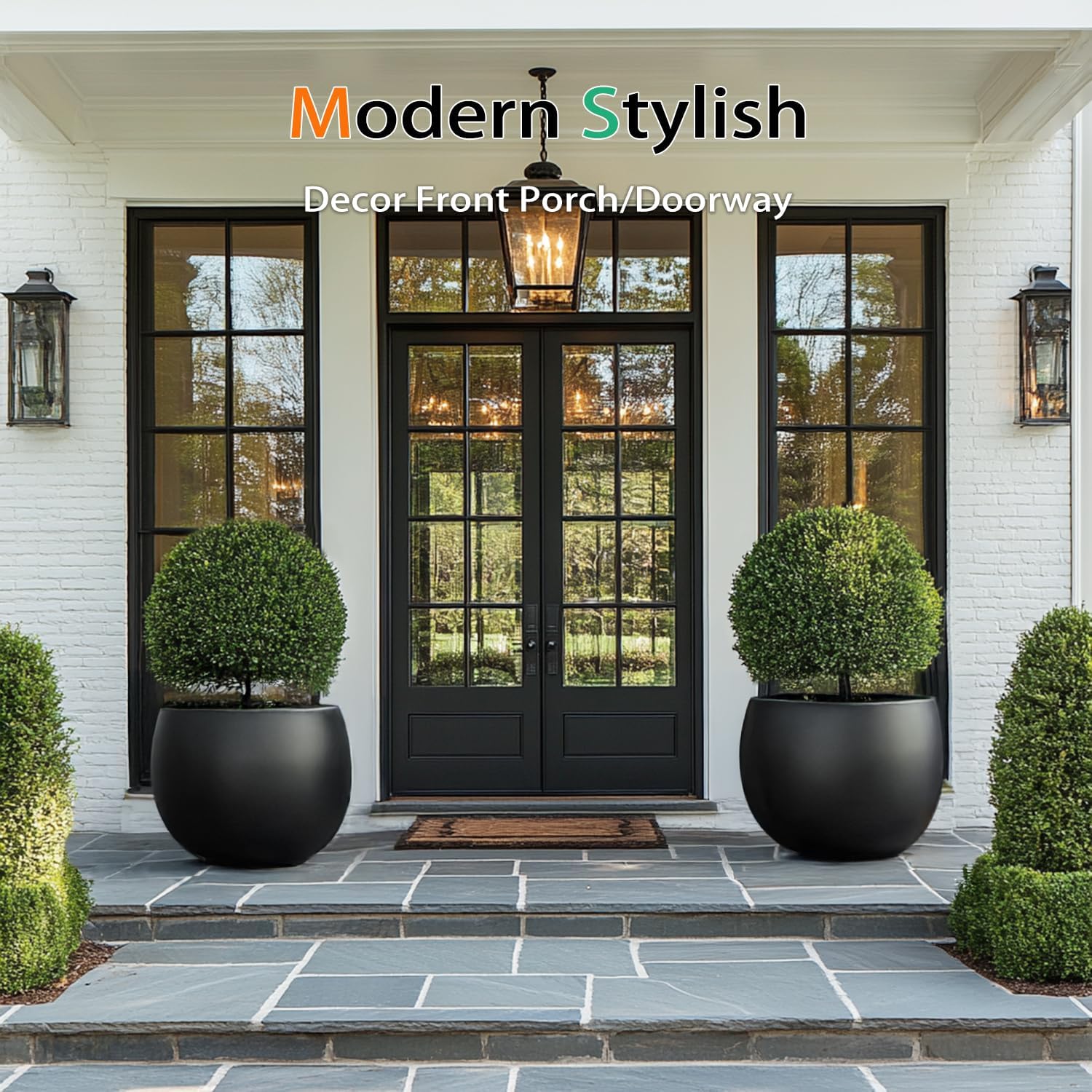 Ball Concrete Planter Outdoor Indoor, Large Tall Cement Plant Pots for Trees Flowers (Black, 18 inch)