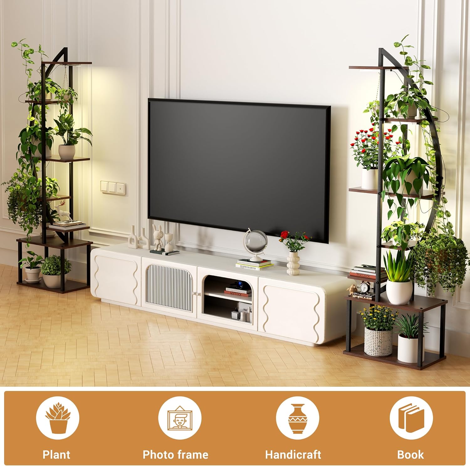 - 【Multi-Functional Home Decor】 The indoor plant stand with grow lights is suitable for any room in your home, it is a perfect gift for plant lovers. You can place it in your living room, bedroom, porch, and other places, not only for plants but also as a stylish display for books, photos, and collectibles, adding a unique artistic touch to your home's beauty. It is also a creative indoor garden gift for yourself, your family or friends.