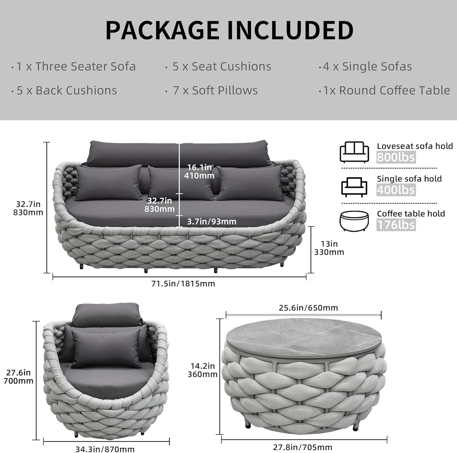 - Stylish & Multi-functional Design: Inspired by bird nests, our outdoor patio furniture set flaunts a modern yet warm look, fitting perfectly in any indoor or outdoor space. Hand-woven with Polyester rope, it exhibits an exquisite craftsmanship. Its versatility allows you to create a cozy corner in your patio, garden, or even living room effortlessly.