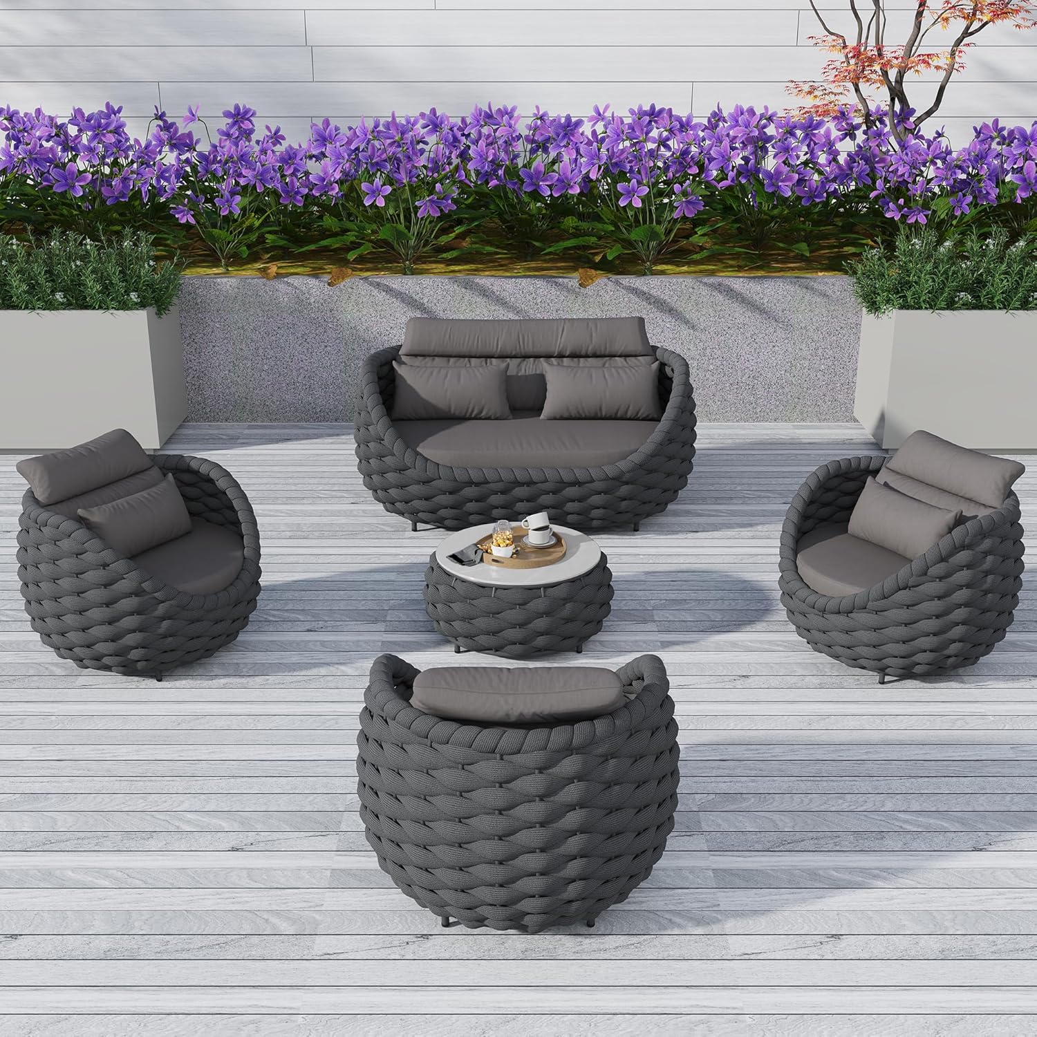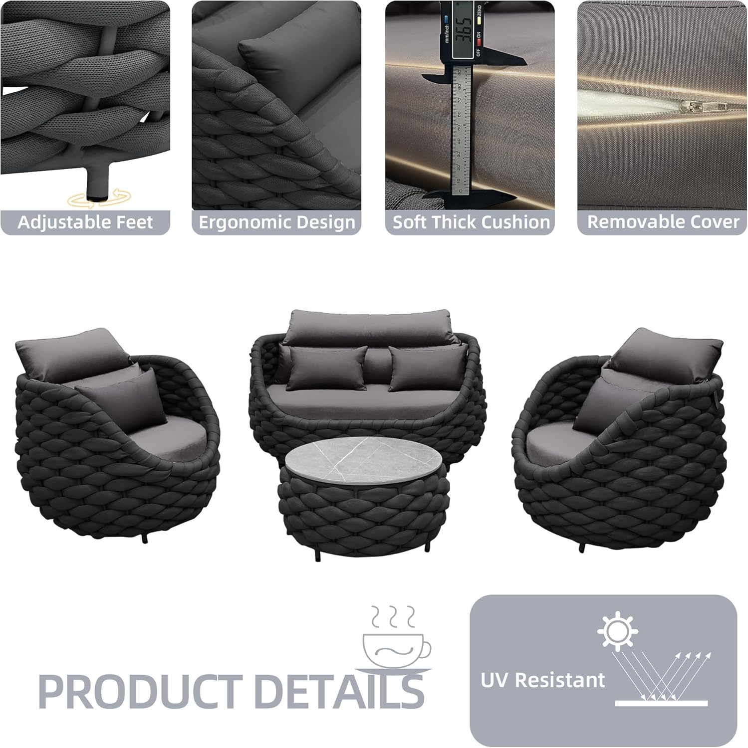 - Stylish & Multi-functional Design: Inspired by bird nests, our outdoor patio furniture set flaunts a modern yet warm look, fitting perfectly in any indoor or outdoor space. Hand-woven with Polyester rope, it exhibits an exquisite craftsmanship. Its versatility allows you to create a cozy corner in your patio, garden, or even living room effortlessly.