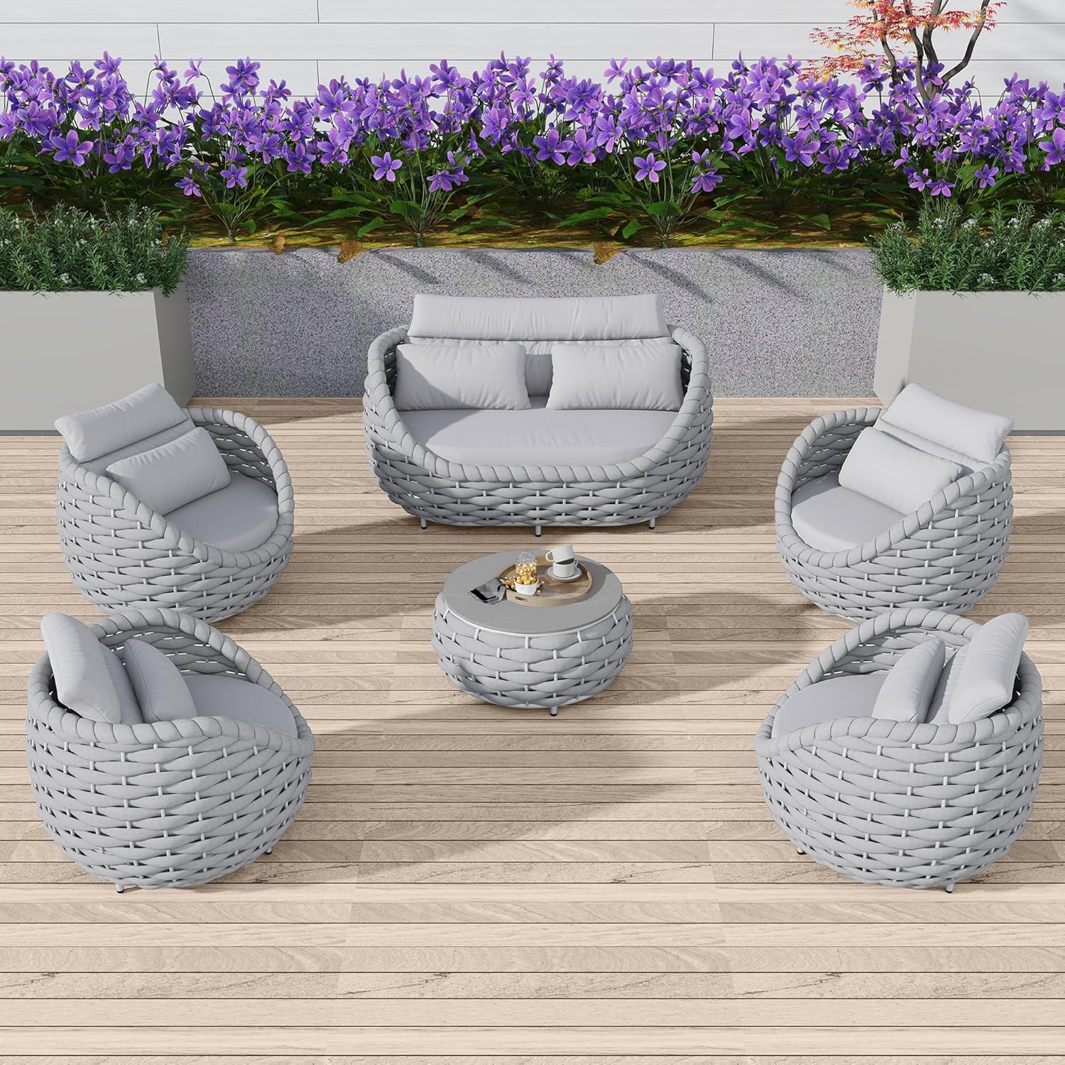 - Stylish & Multi-functional Design: Inspired by bird nests, our outdoor patio furniture set flaunts a modern yet warm look, fitting perfectly in any indoor or outdoor space. Hand-woven with Textilene rope, it exhibits an exquisite craftsmanship. Its versatility allows you to create a cozy corner in your patio, garden, or even living room effortlessly.