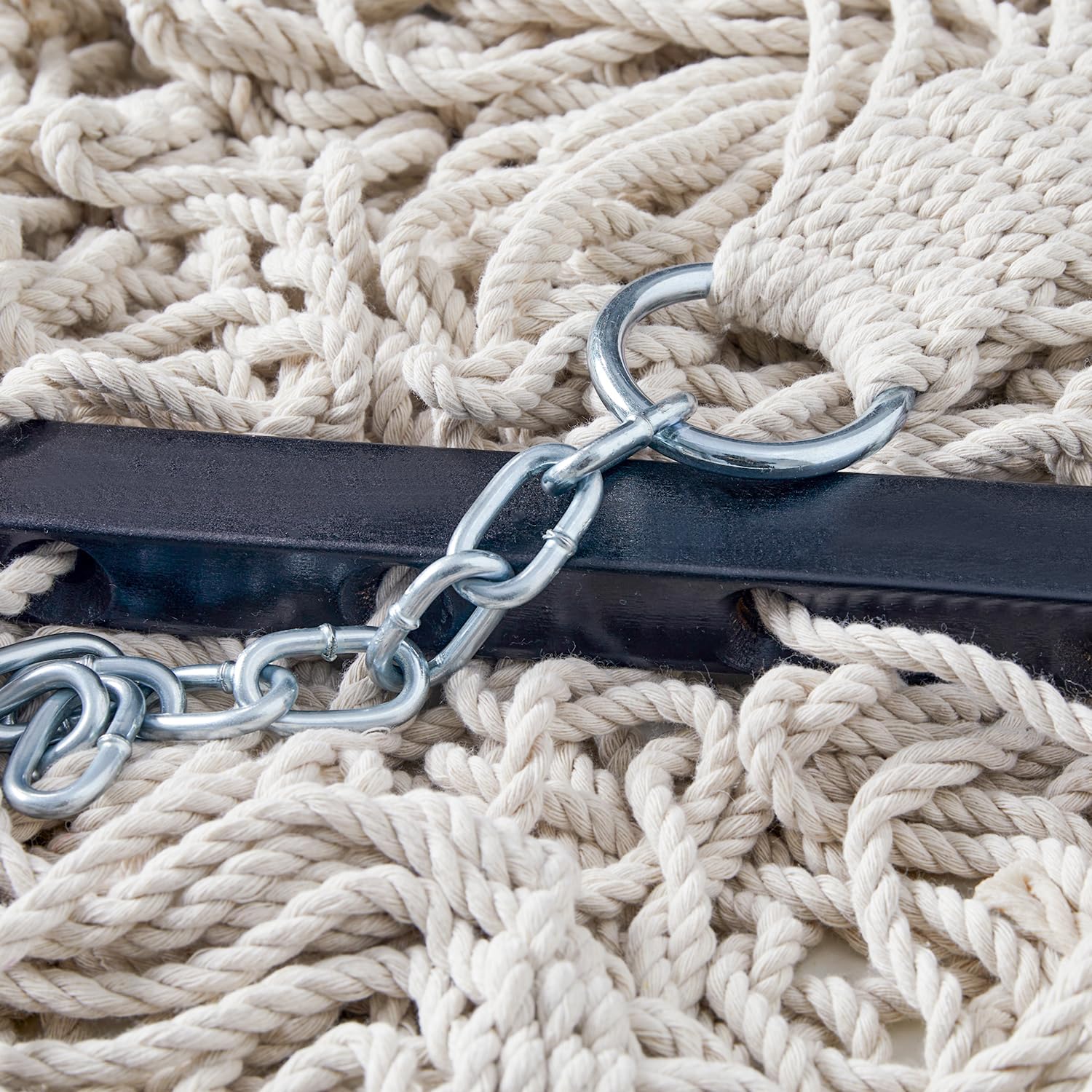 - Ultra-Comfortable Hadnwoven Rope: Thanks to its many holes, a knotted hammock offers cooling ventilation, making it a wonderful summer hammock! The strong metal hook can adjust the height of the hammock. The rope shape provides optimal back support whether reading or napping.