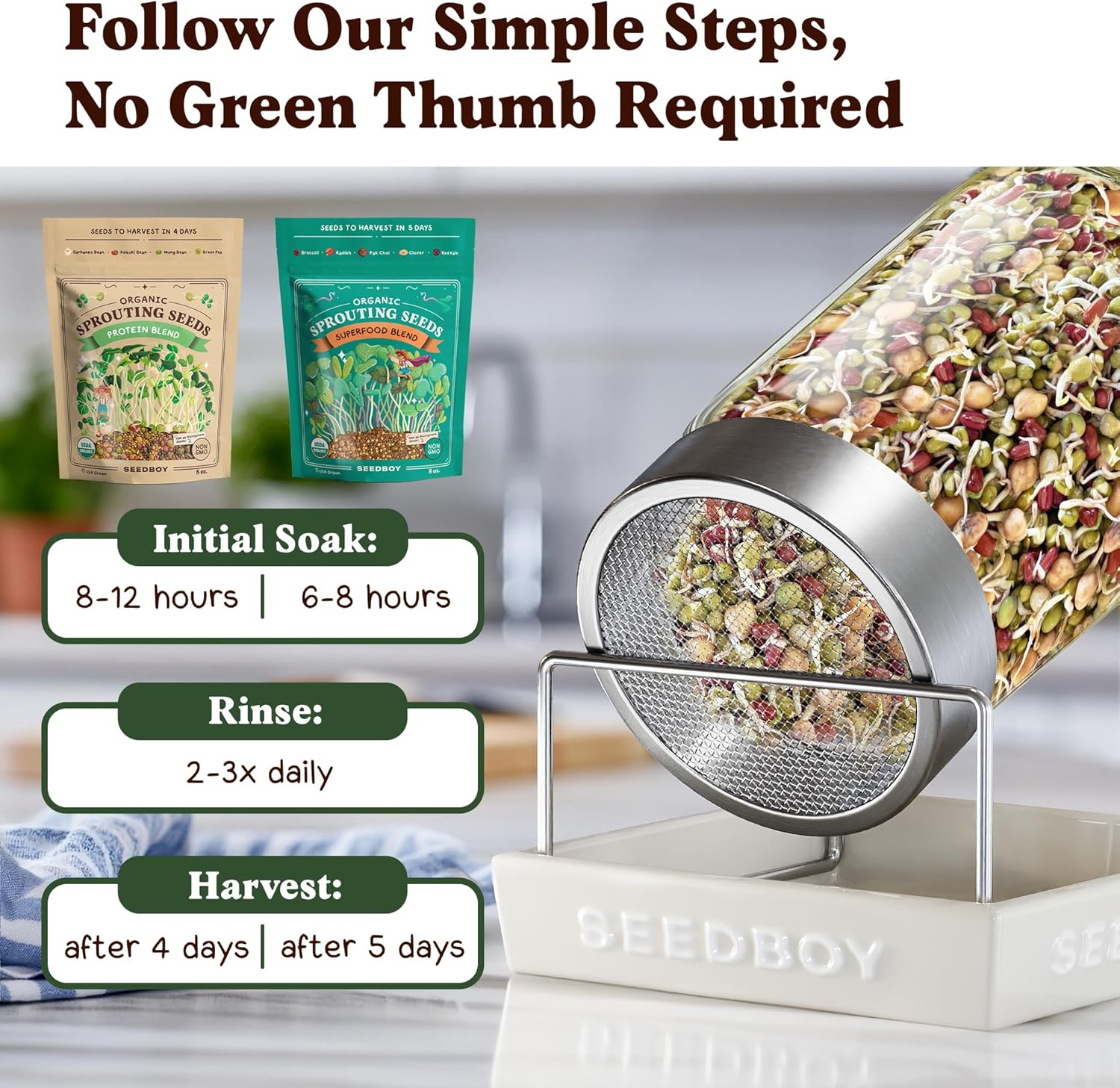 Seedboy Organic Sprouting Seeds Variety Pack - Two 8oz Bag Bundle - Superfood & Protein Blends, Non-GMO, USA-Grown Microgreens Mix, Makes 12 Quarts of Sprouts (36 Servings) (Superfood/Protein)
