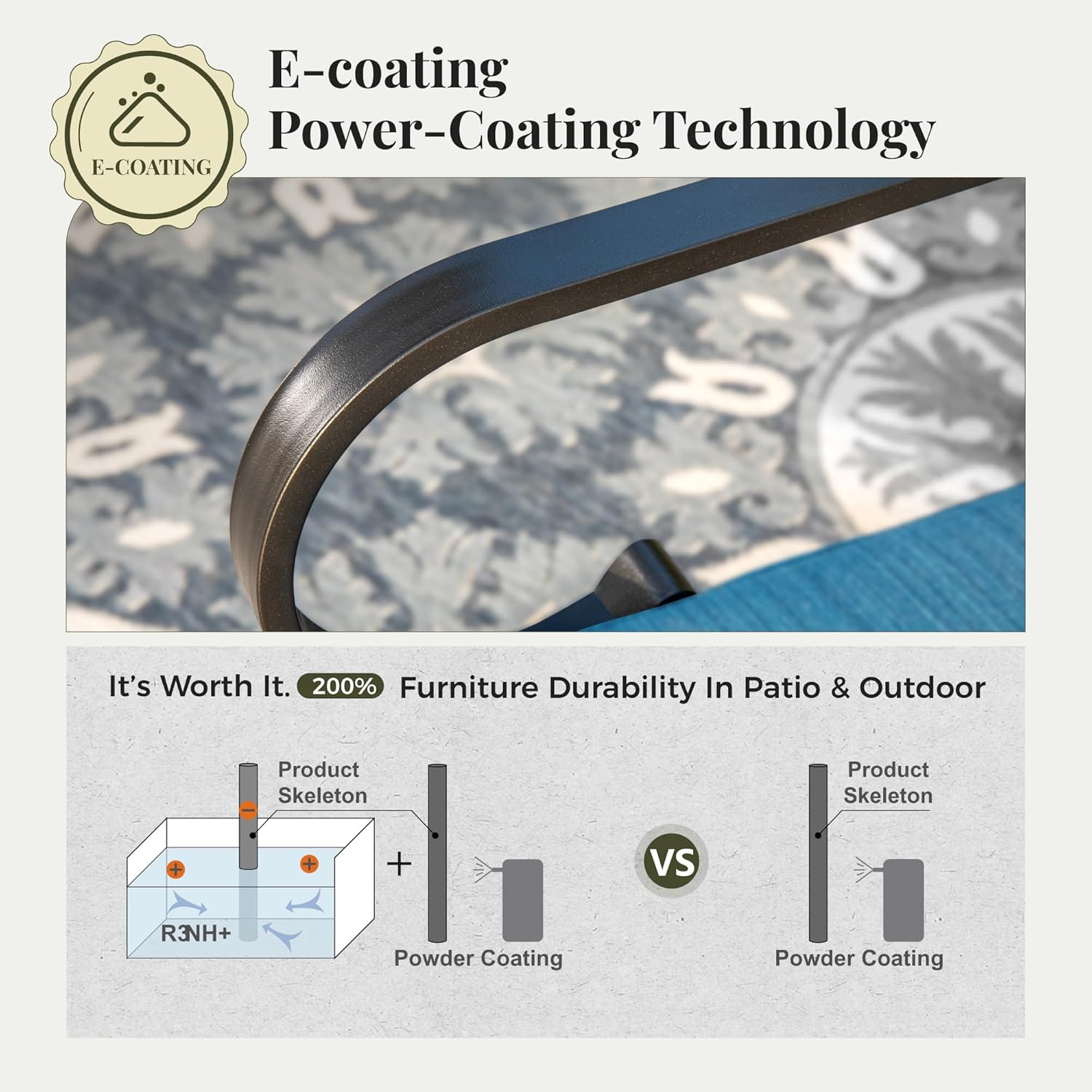 Patio Furniture Sofa, 3-Seat Patio Sofa Steel Frame Outdoor Sectional Couch with Deep Seating and 5.75” Cushions for Lawn Backyard Porch Deck, Peacock Blue