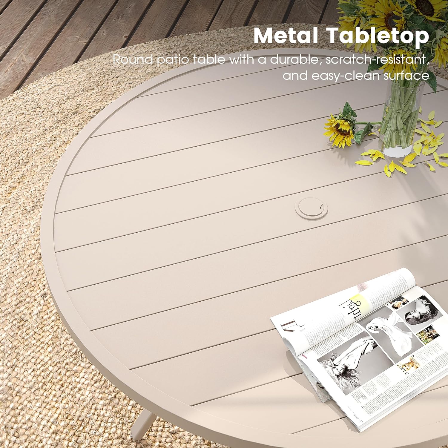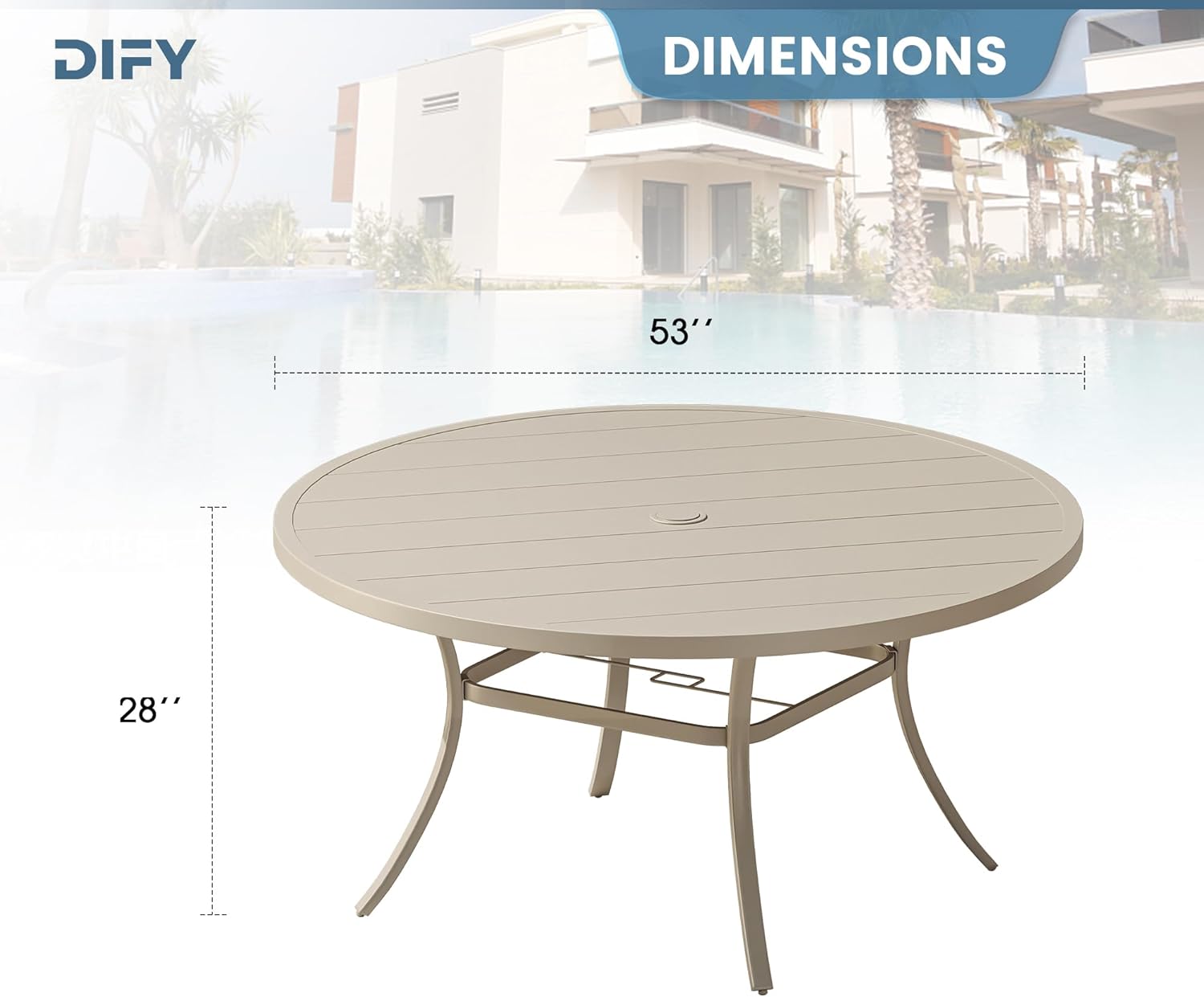 DIFY 53" Round Outdoor Patio Dining Table for 8, Metal Patio Table with 1.57" Adjustable Umbrella Hole, All-Weather Dining Furniture Table for Backyard Lawn Garden, Cream