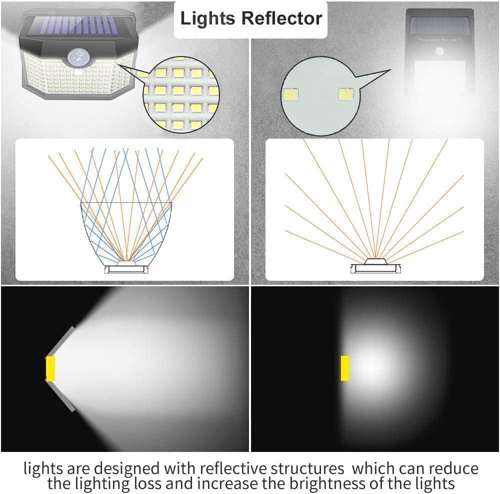 HMCITY 120 LED Outdoor Solar Lights with Motion Sensor and 3 Lighting Modes, IP65 Waterproof Wide Solar Wall Lights Ideal for Garden Patio Yard (Front Button 6Packs, Daylight White)