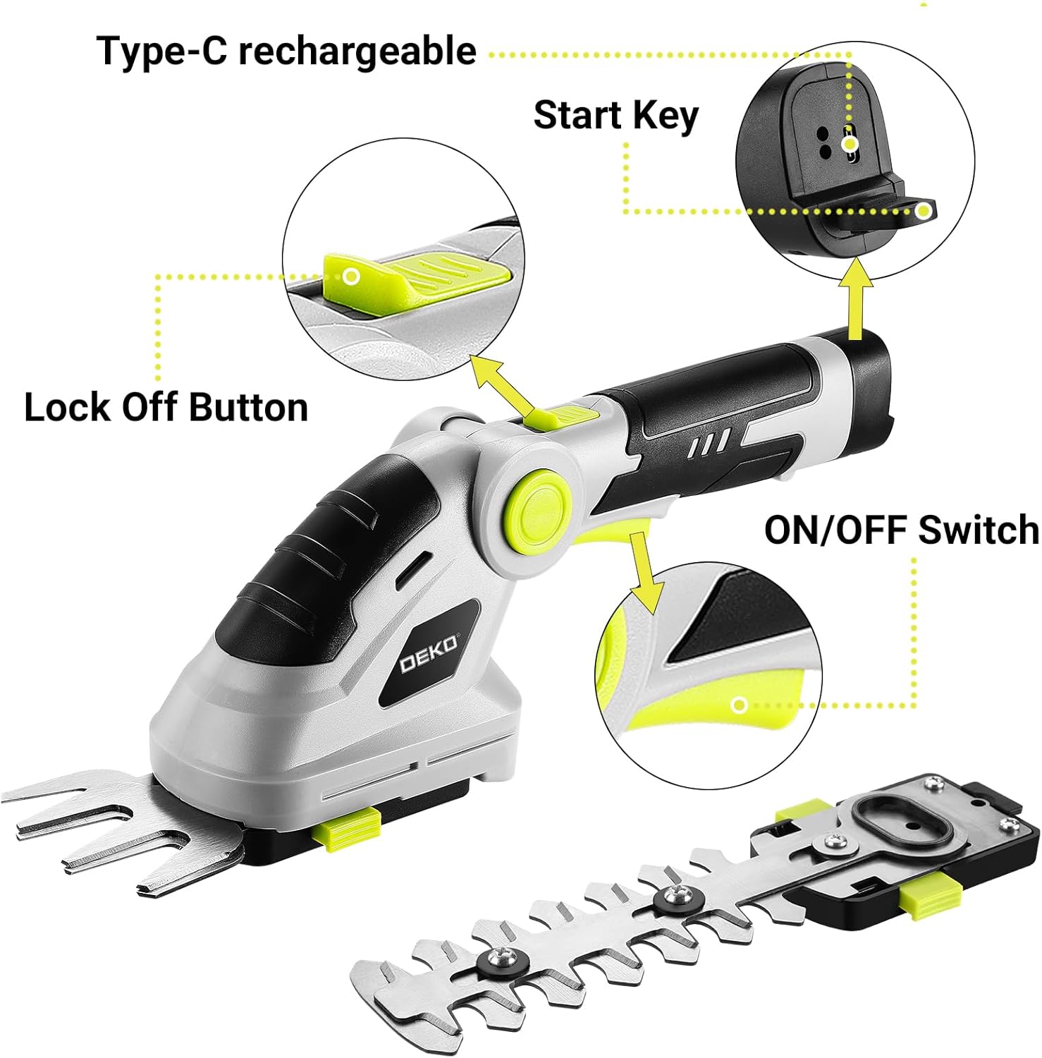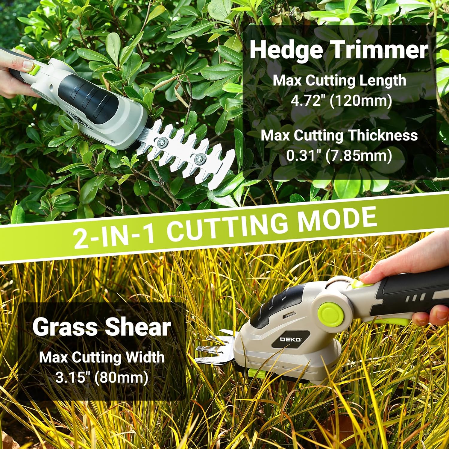Hedge Trimmer Cordless Grass Shear: DEKOPRO 8V Electric Bush Trimmer Grass Cutter Trimmer, 2 in 1 Handheld Hedge Trimmers for Garden Lawn Hedge Yard, Lithium-Ion Battery and Type-C Cable Included