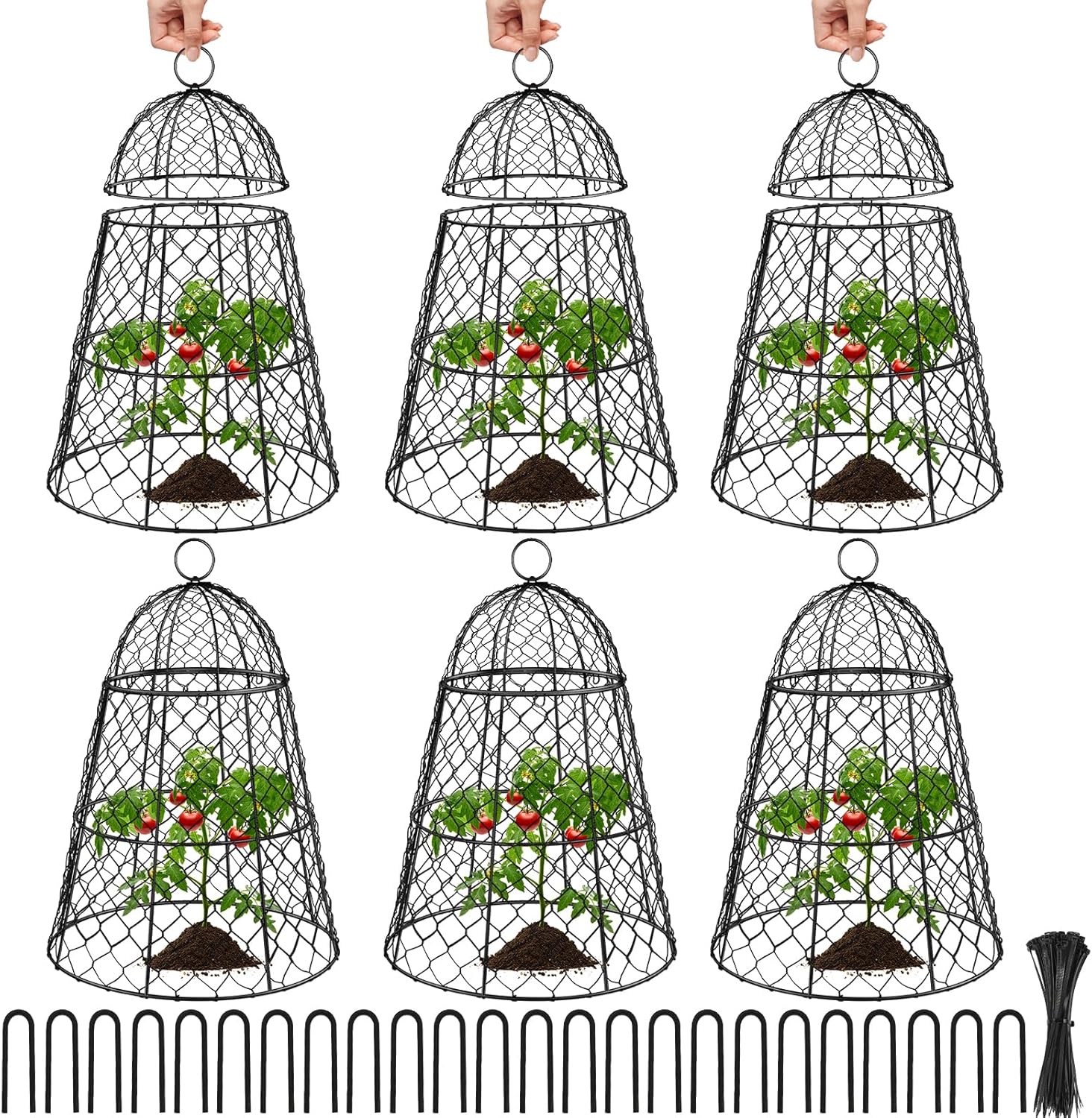 - Package Includes : You will get 6 pieces plant protectors, 24 fixing pins. The size of wire plant cover is 17"H x 13"D, protection for your plants with our chicken wire plant cover