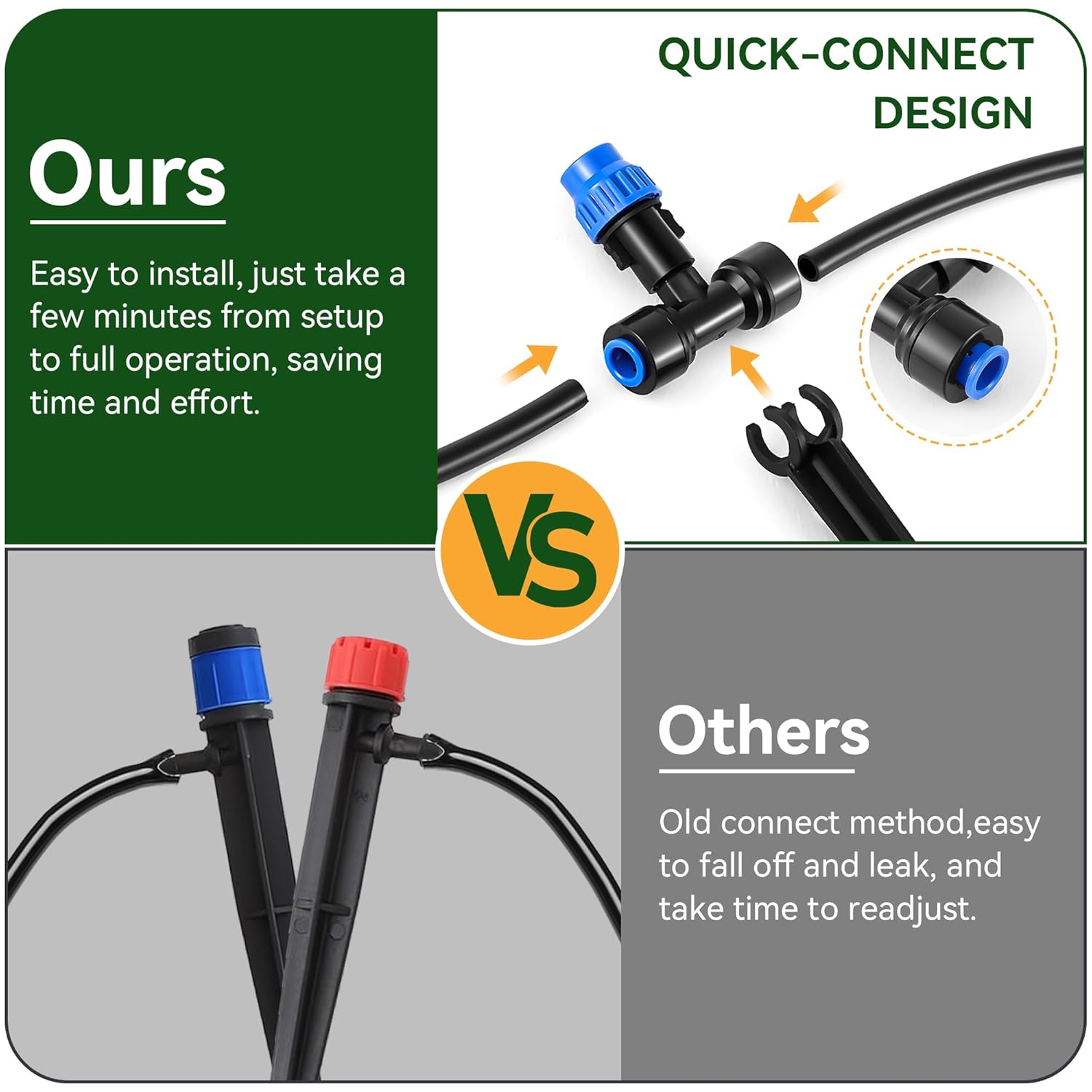- Quick Efficient Connector Technology: Featuring quick connector design, this plug and play irrigation tube makes the installation easier than ever, and it takes only 10 minutes from setup to full operation just push to connect! When the faucet adapter is tightened and the water is turned on, the garden irrigation system will automatically work