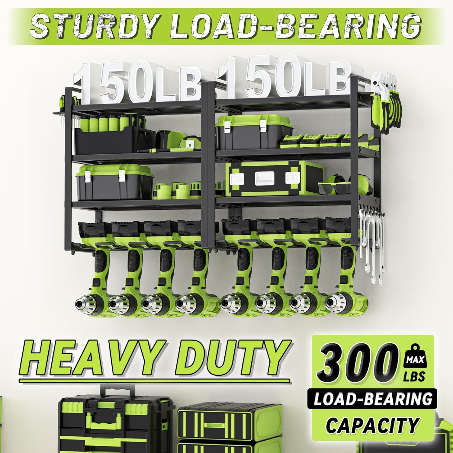 Power Tool Organizer Wall Mount,4 Layers Capacity Heavy Duty Metal Storage Rack with 8 Drill Holders for Drills Cordless Tools,Garage Organizer Suitable Workshop Basement