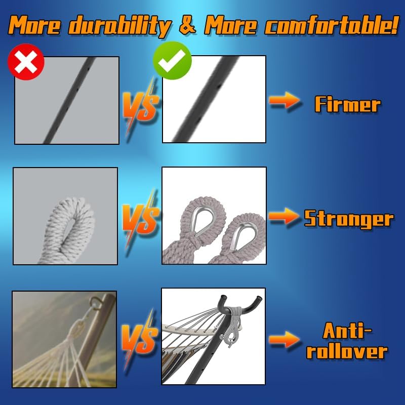 - 【Large Size & Weight-Bearing】 : ANAGOO hammock with stand adopts a reinforced design, double hammock maximum load capacity up to 500LBS, multiple people share no pressure.