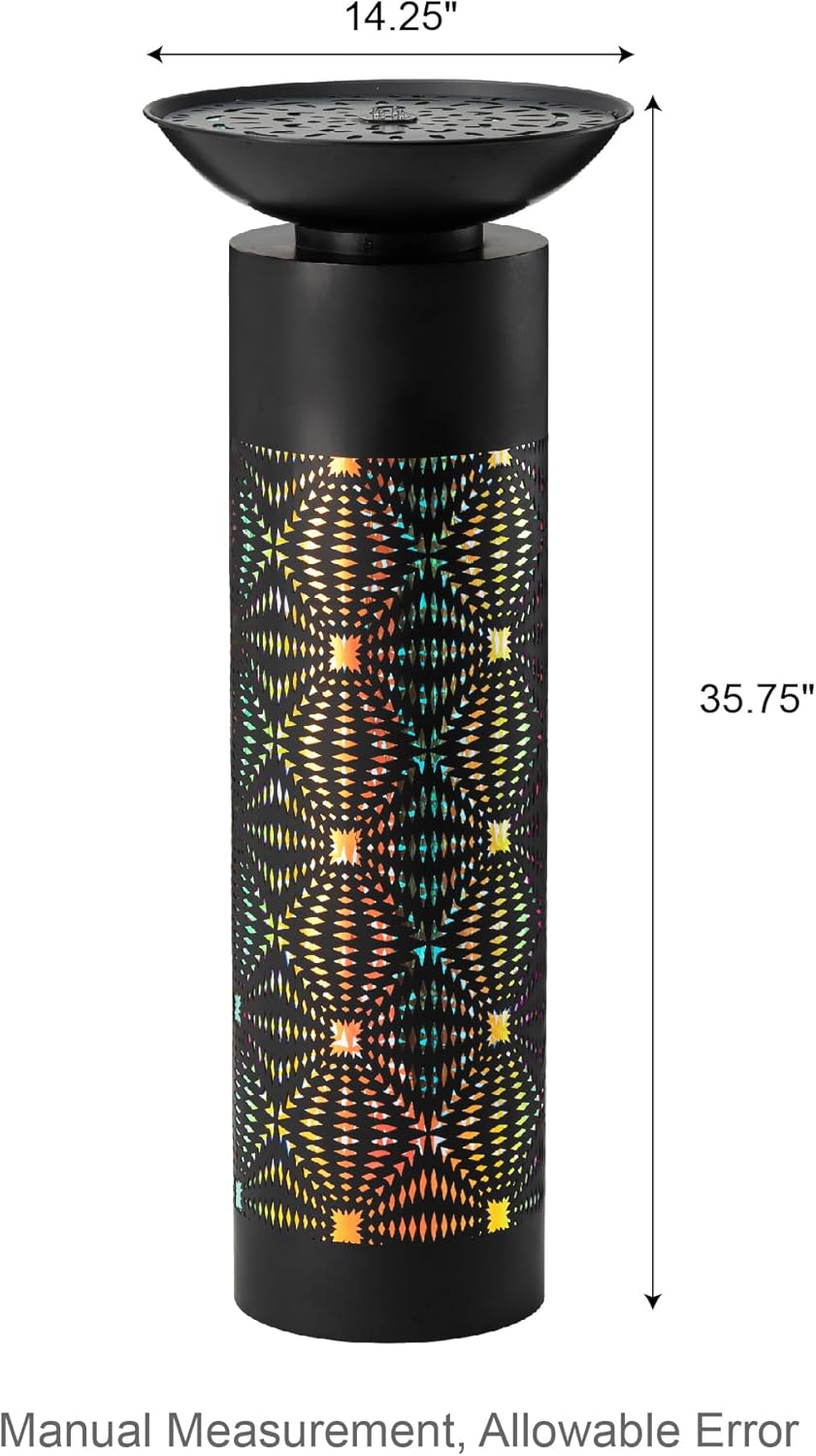 - Eye-Catching LED Outdoor Fountain :This weather-resistant metal bird bath fountain combines intricate cutout patterns with built-in warm white LED lighting to create mesmerizing light-and-shadow displays that elevate any outdoor space. The gently trickling water sparkles under the bright yet cozy glow, blending modern design with natural tranquility for a captivating focal point in gardens, patios, or decks.