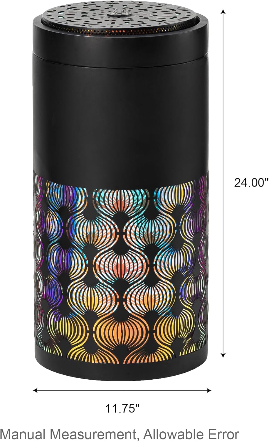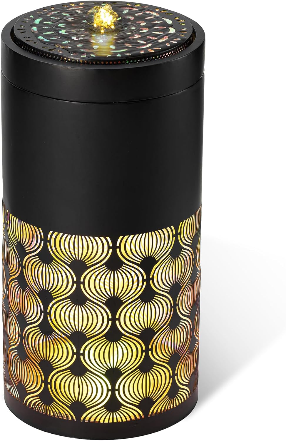 - Durable Metal Cutout Fountain --- Glitzhome modern metal water fountain is made of high quality Metal, Metal Thickness: 0.6mm~0.8mm, ensures durability and a sophisticated aesthetic. Classic and elegant powder-coated matte black finish built to last. Modern metal cutout pattern fountain with delicate lighting casts intriguing lights and shadows.