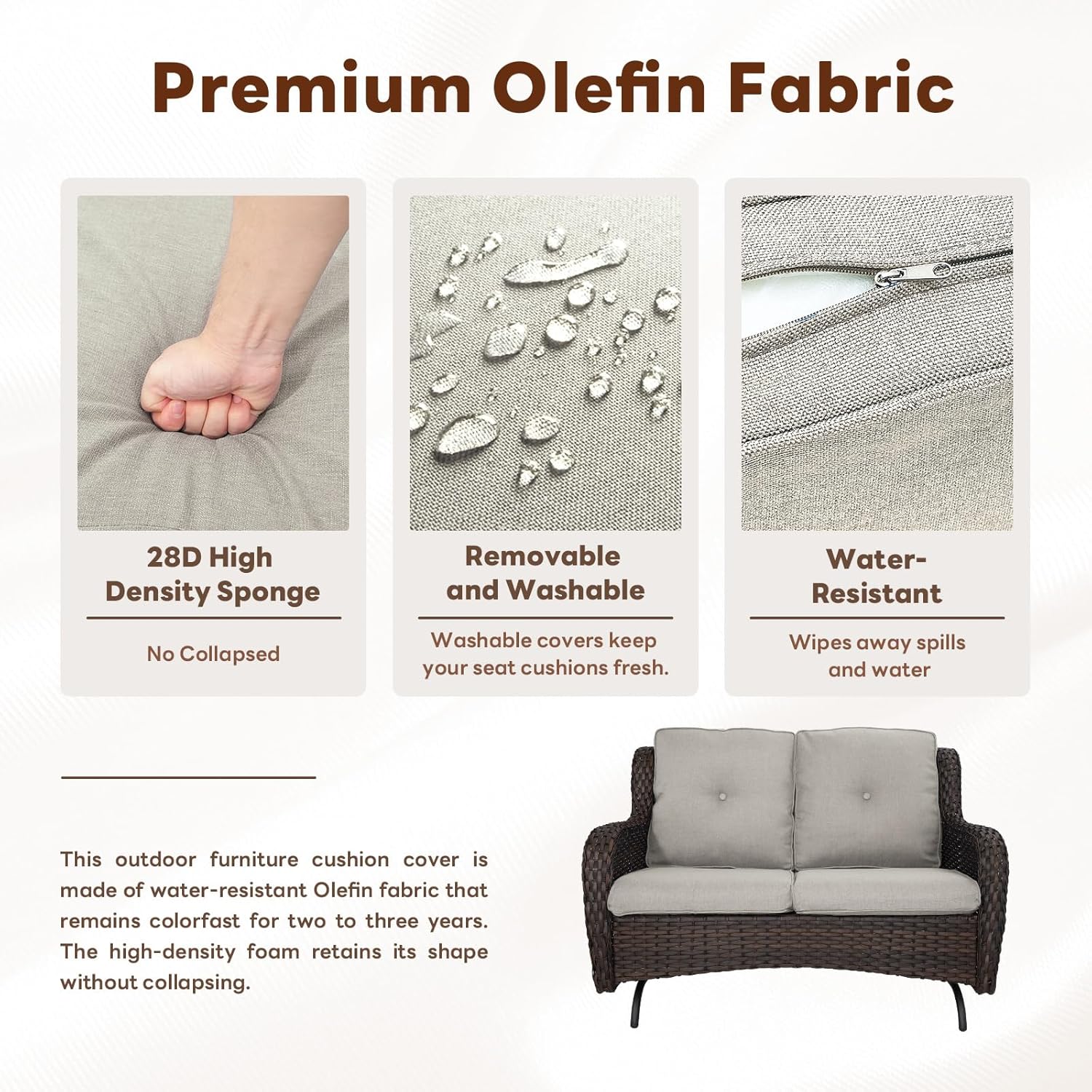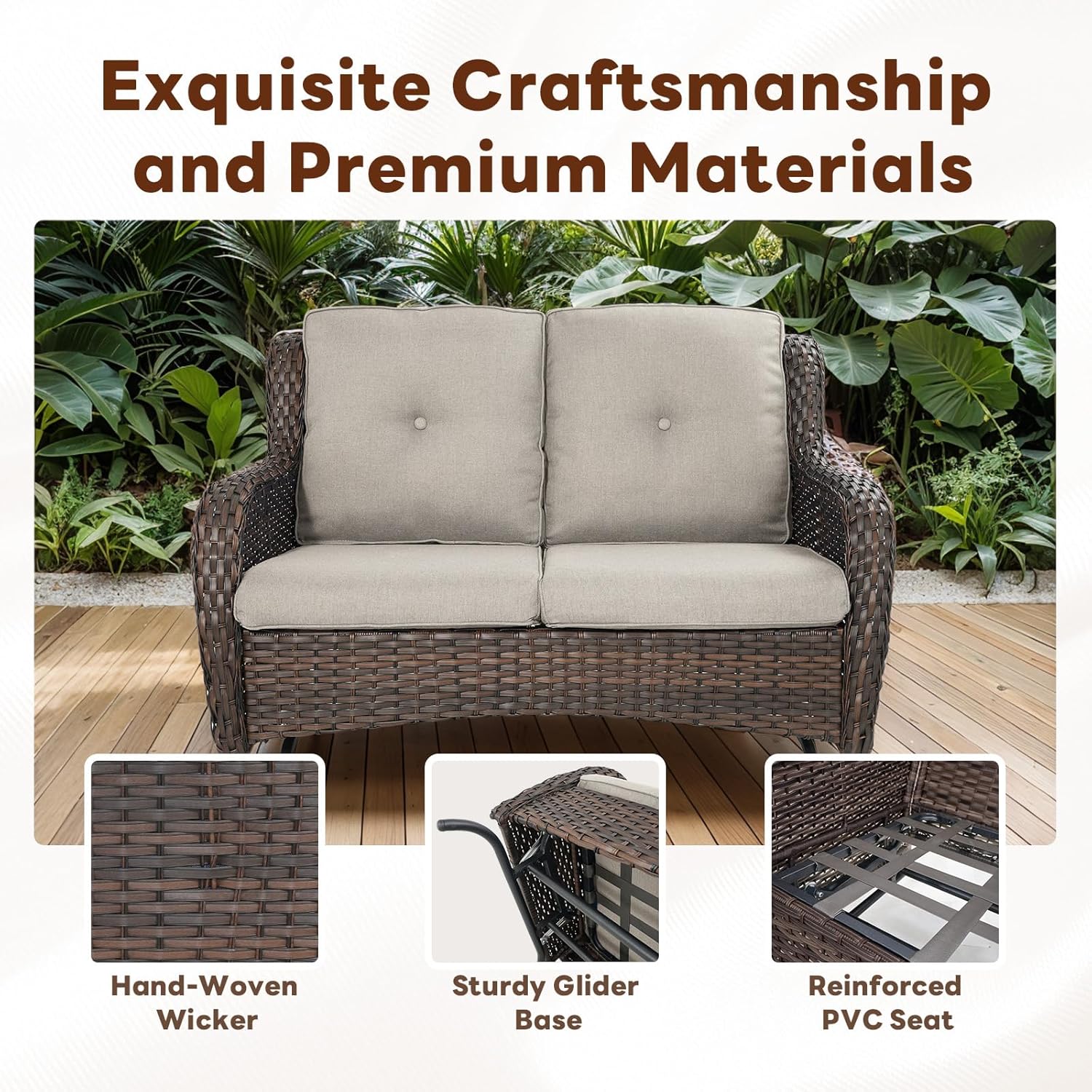 - Stylish Addition to Your Patio Décor:The timeless design of this patio glider loveseat adds a touch of sophistication to any outdoor space. Its neutral tones and wicker texture blend seamlessly with existing outdoor furniture and décor.