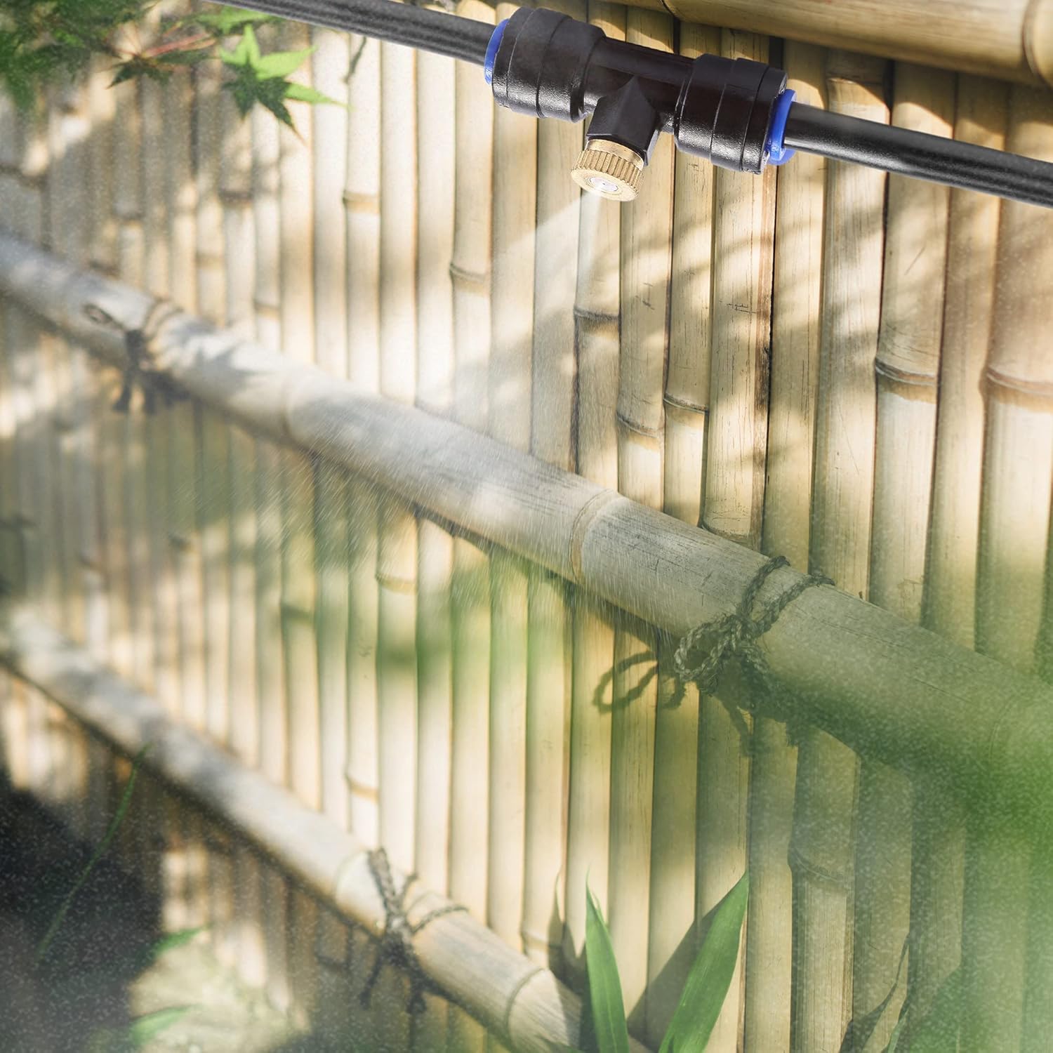 - 【Misting Nozzles Tee with Brass Mist Nozzles】: Mornajina automatic drip irrigation system kit includes 6.2mm/0.24inch updated misting nozzles tees, brass mist nozzles, very convenient to adjust the place to be sprayed and specify the direction. Each brass mist nozzle and misting nozzles tee be removed from each other for easy cleaning and preventing clogging. And by twisting nozzle, you can adjust the water volume. Place the drip irrigation system on the ground, fasten it to a fence, or hang it on a flower bed in the air. These irrigation system for garden offer great flexibility.