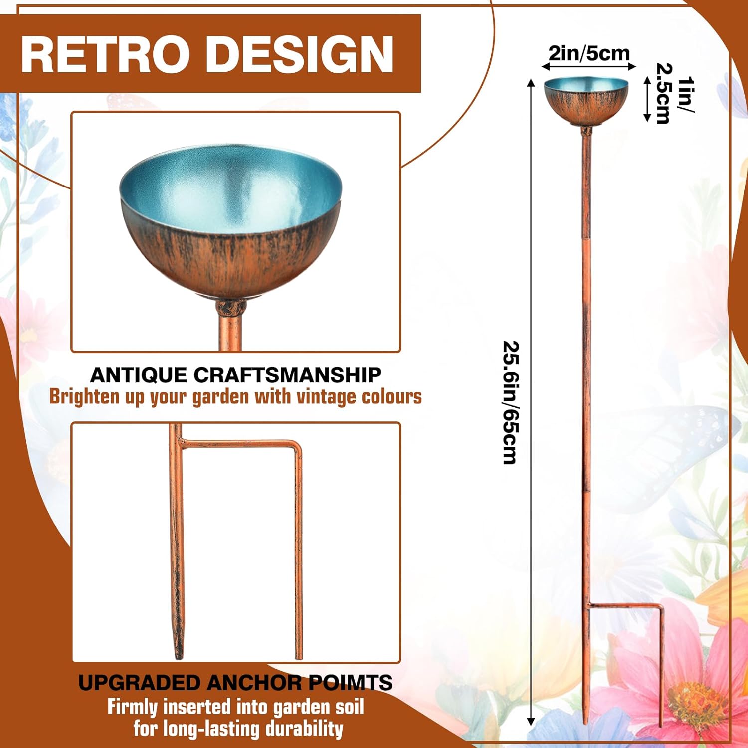 - Retro Design: the 9 bee watering stations are inspired by flowers and can instantly attract small insects such as bees and butterflies; The exterior is made of antique craftsmanship, and the interior of the bowl is charming blue color, which can be well integrated into your garden