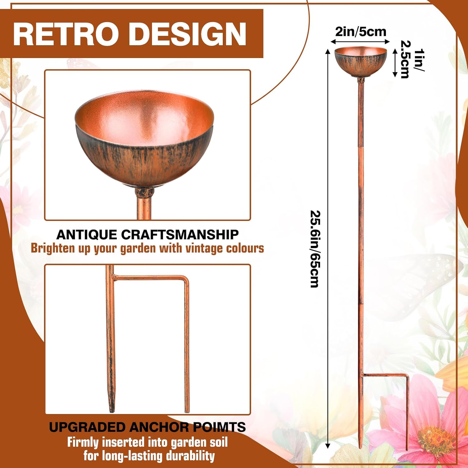 - Retro Design: the 6 bee watering stations are inspired by flowers and can instantly attract small insects such as bees and butterflies; The exterior is made of antique craftsmanship, and the interior of the bowl is charming copper color, which can be well integrated into your garden
