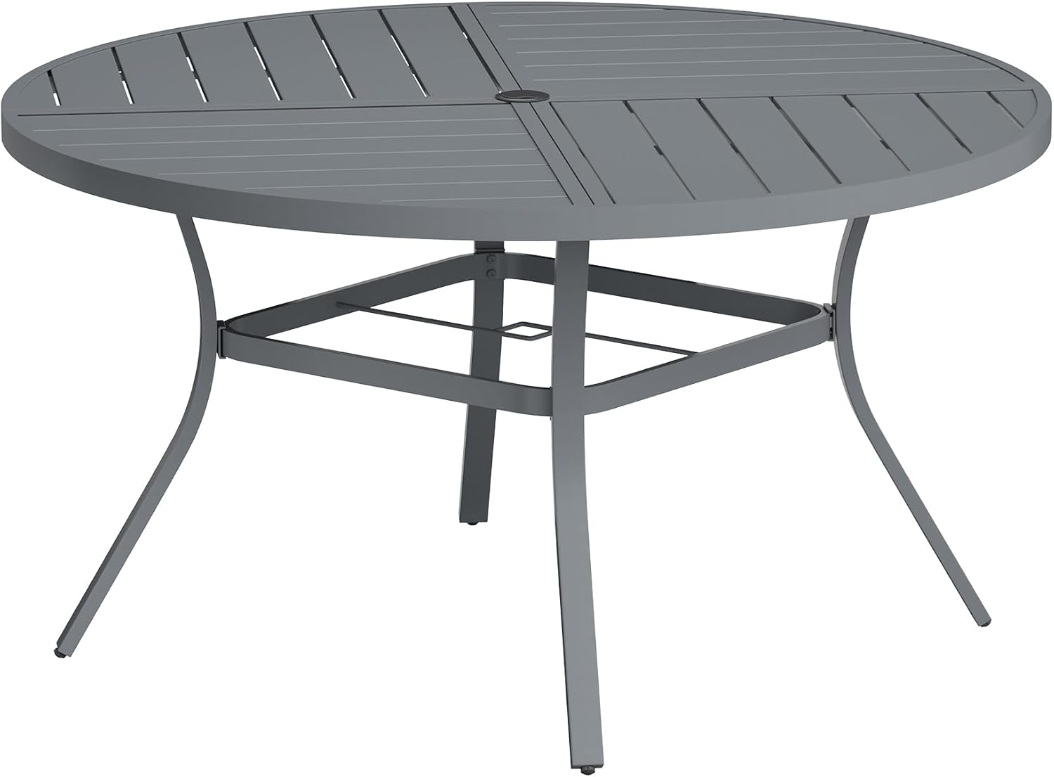 VICLLAX Round Patio Table with Adjustable Umbrella Hole for 8, All Weather Metal Outdoor Dining Table for Lawn Garden, 53.1" Outdoor Coffee Table, Grey Tabletop