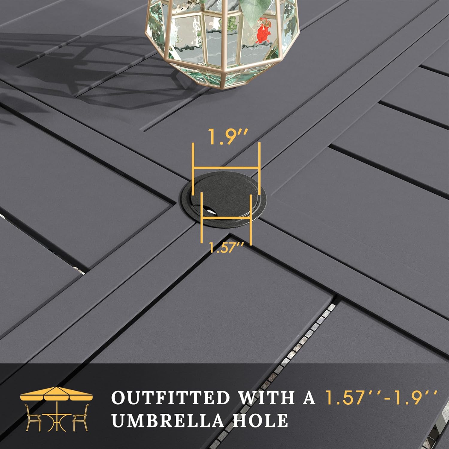 - 【Accommodates 8 People】53.1"x 53.1"x 28", 1.57"-1.9" adjustable umbrella hole, large enough for gatherings with family or friends, ideal for gardens, poolsides, decks and any outdoor space