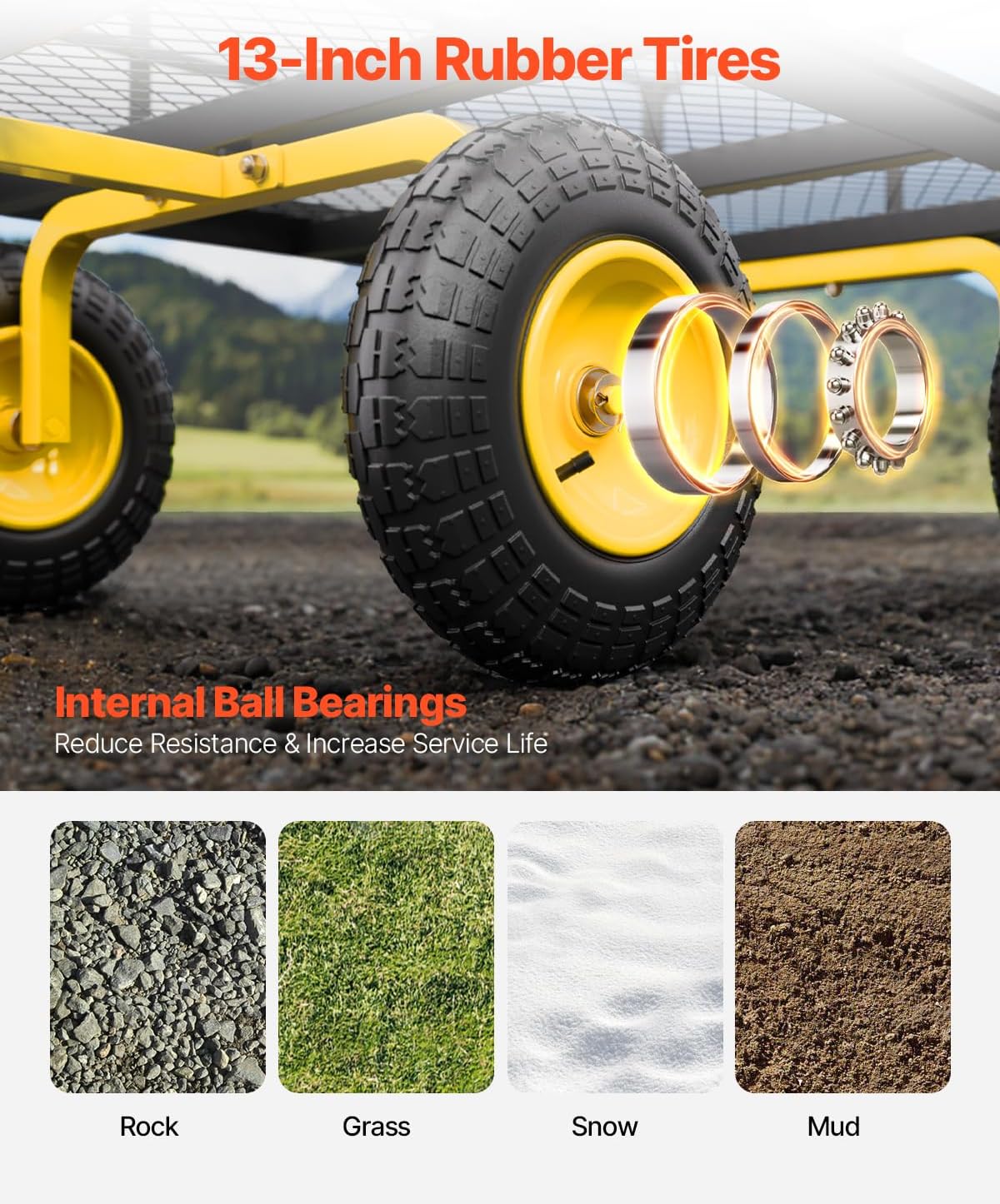 VEVOR 1200 Lbs Steel Garden Cart, Heavy Duty Pullable Garden Wagon Yard Cart, 2 in 1 Outdoor Metal Utility Wagon Yard Trailer with 13" All Terrain Tires, Mesh Removable Sides and 180°Rotating Handle