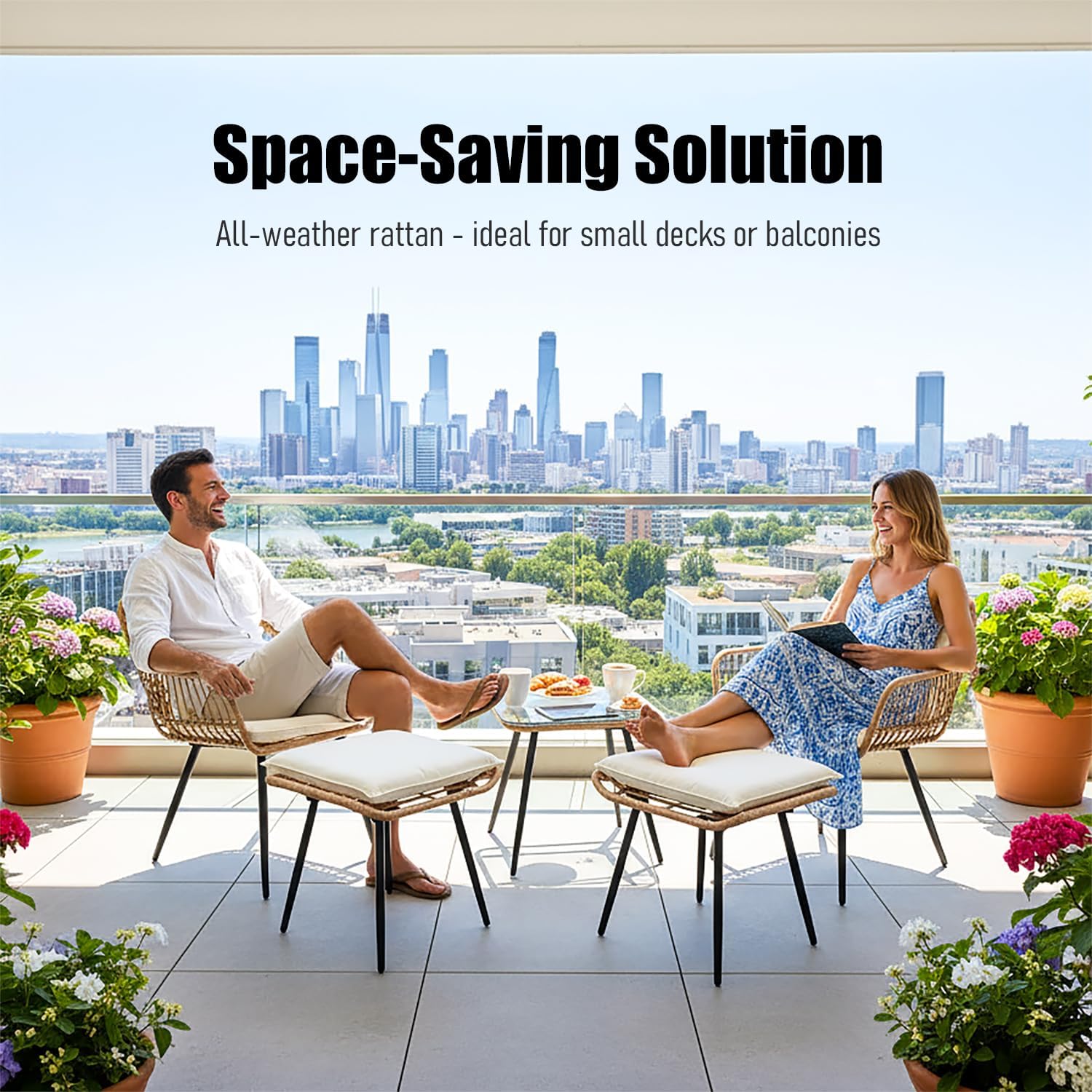 - All-Weather Resilience & Effortless Care: Built to thrive in the elements, our bistro patio sets utilize inherently waterproof, all-weather materials. Non-slip feet ensure stability and safety, even on wet surfaces. Detachable, high-resilience foam cushions resist sagging and deformation, while their easy-clean design simplifies maintenance