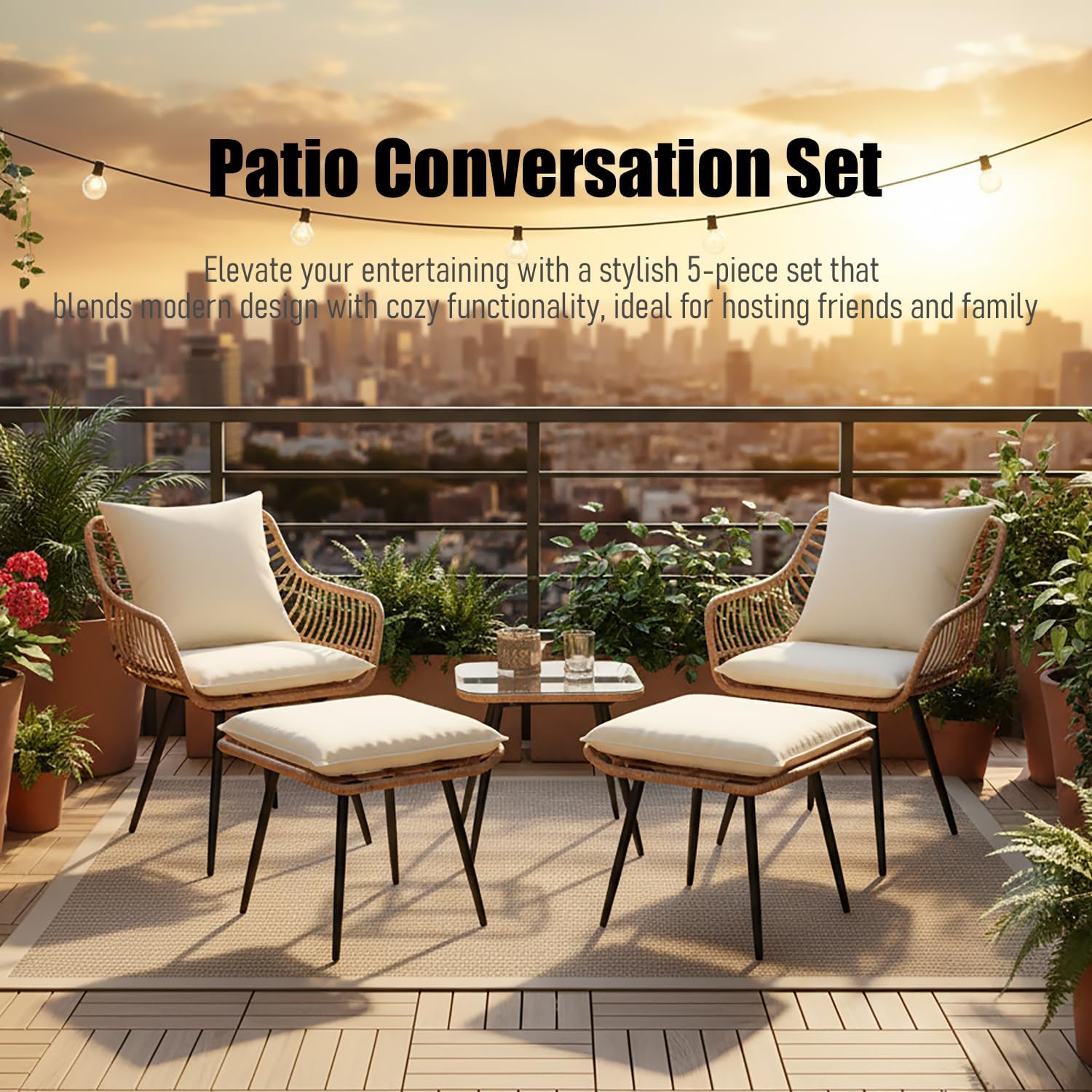 - Unmatched Comfort: Relaxation is paramount. Seats in our 5-piece conversation set feature an extra-spacious, wide design for maximum comfort. Generous, softly contoured footrests encourage total relaxation, making this table and chairs ensemble perfect for savoring your leisure moments in any environment