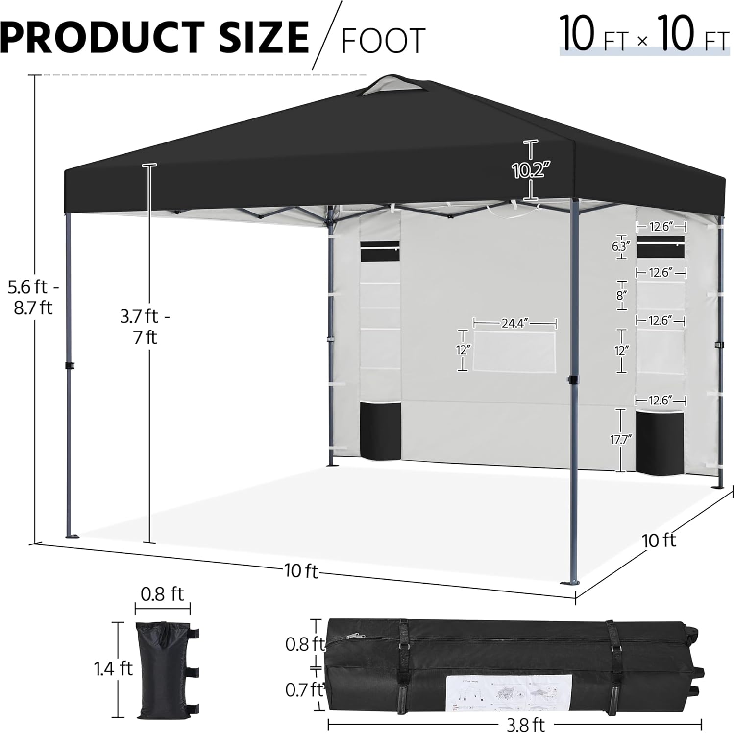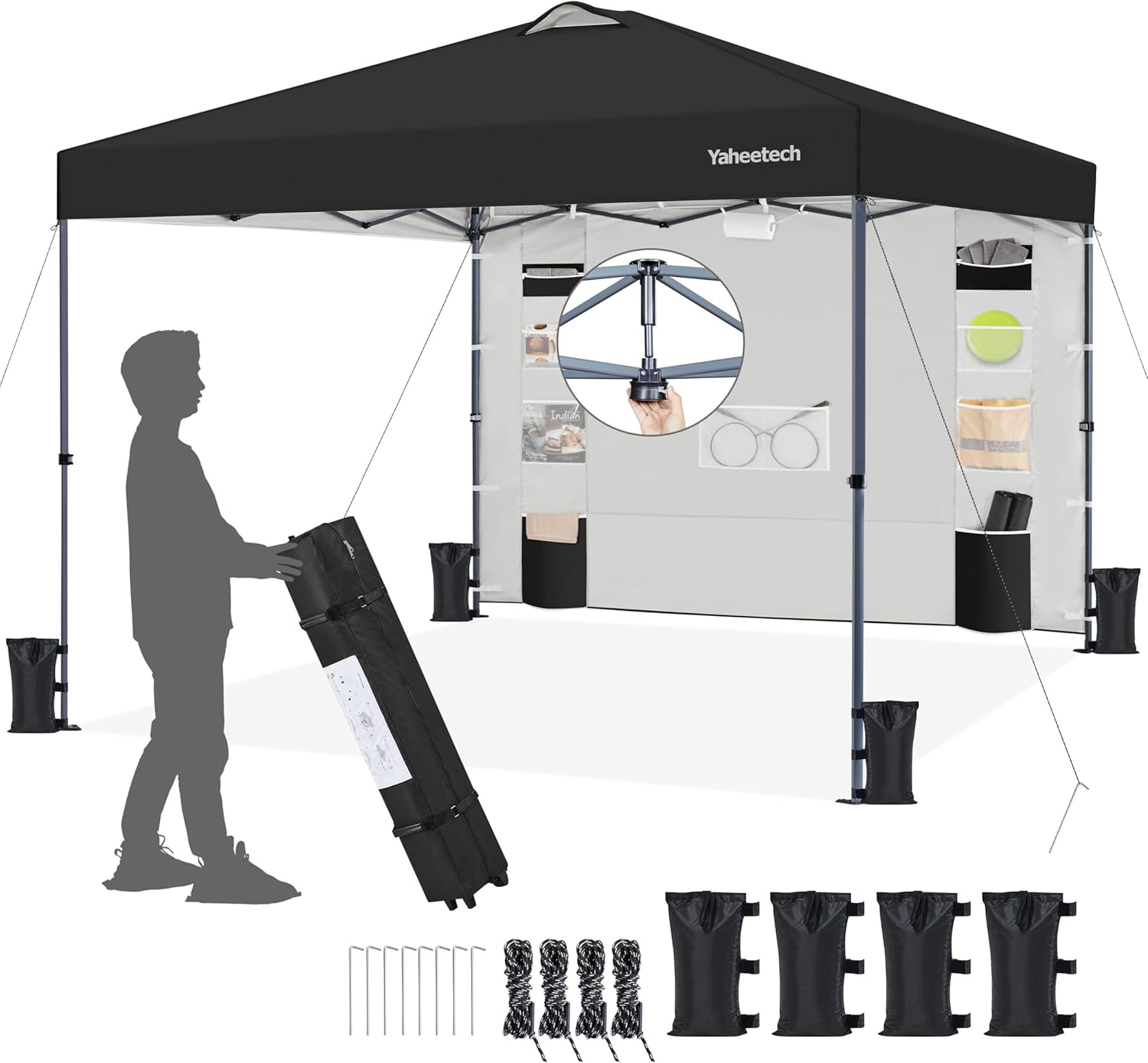 Yaheetech 10x10 Pop-up Canopy Tent w/Removable Pockets Sidewall for Extra Storage, Outdoor Sun Shelter Waterproof & Durable w/Wheeled Bag, Sandbags & Guylines for Beach Camping Party (Black)