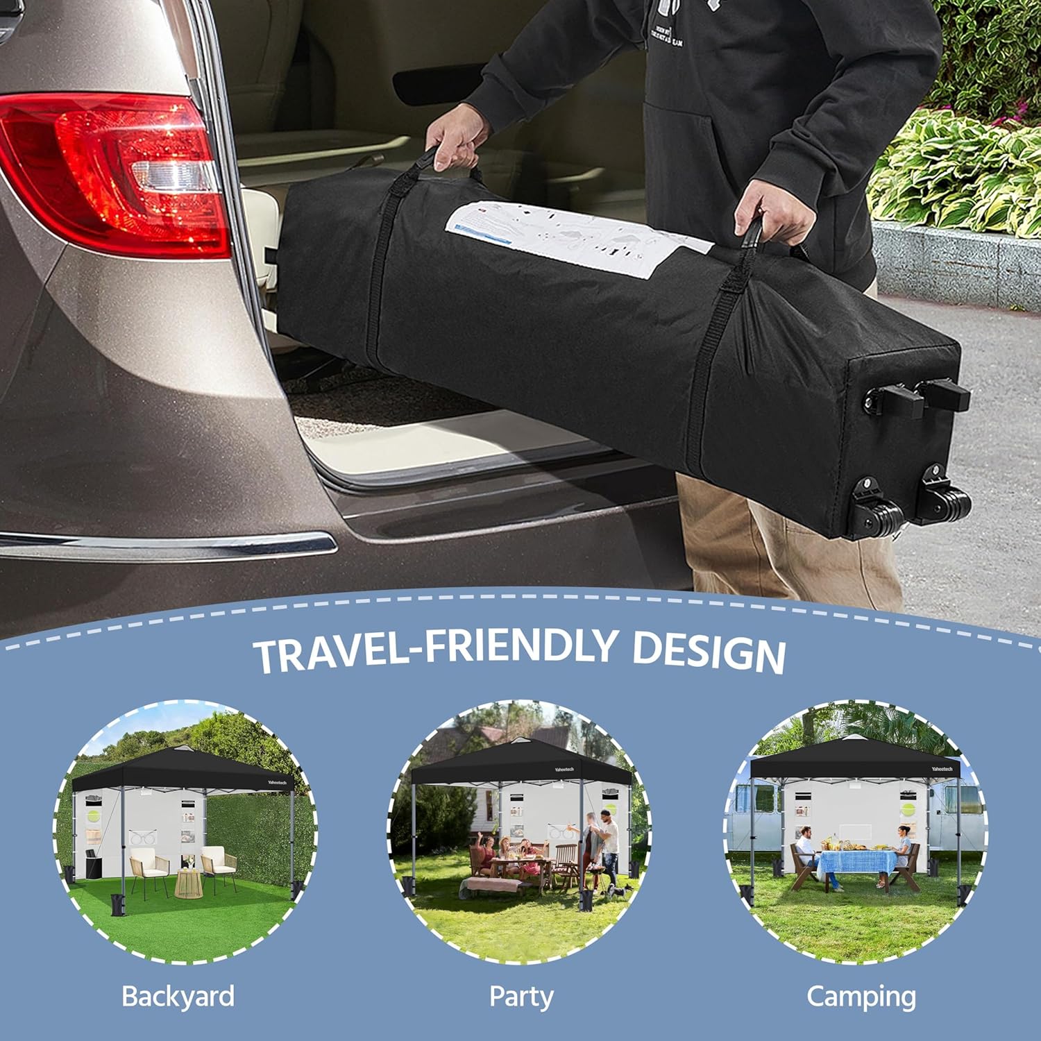 - Effortless One-Person Setup: The innovative push-to-lock mechanism of this instant pop-up canopy streamlines setup and takedown, letting you secure or collapse the entire canopy with a single push or pull at the center knob