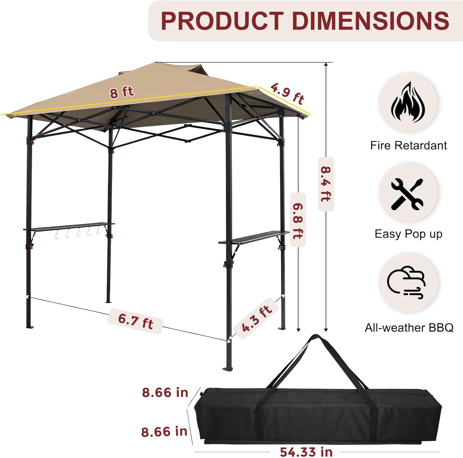Outdoor Pop up Barbeque Grill Gazebo 8x5 with Carry Bag, Portable BBQ Canopy Tent with Handy Wired Shelf, Beige