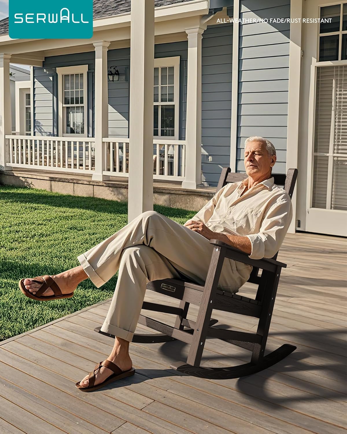 - Details Make It Successful: This porch rocker features an ergonomic curved backrest—unlike traditional straight-back designs—providing superior reclining comfort. With wide armrests and a contoured seat, the SERWALL rocking chair alleviates fatigue. (Tip: Pair it with our cushion [ASIN:B0D7Q1V8ZC] for added comfort.)