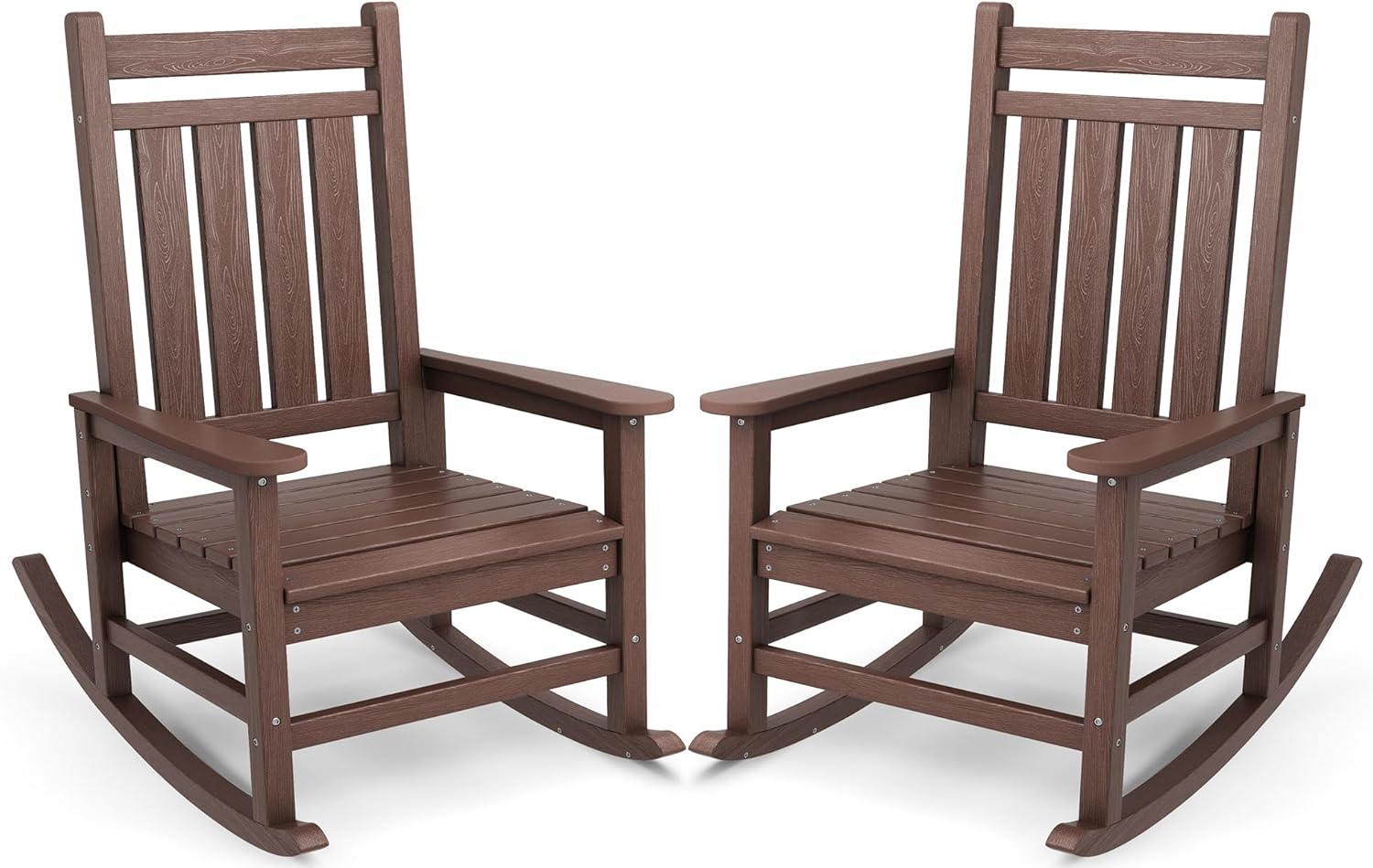 SERWALL Oversized Outdoor Rocking Chair Set of 2, HDPE Rocker for Adults, Patio Rocking Chairs for Porch, Brown