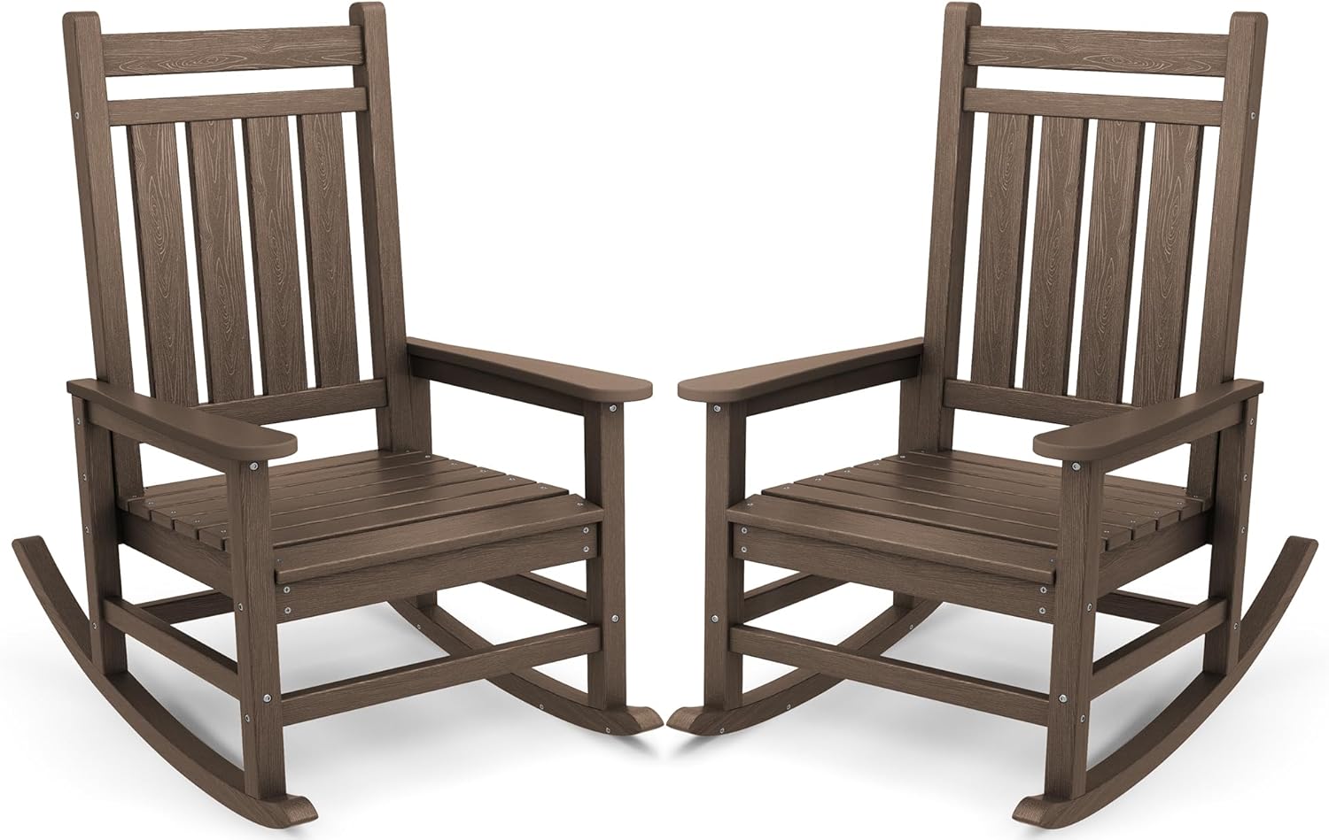 SERWALL Oversized Outdoor Rocking Chair Set of 2, HDPE Rocker for Adults, Patio Rocking Chairs for Porch, Coffee