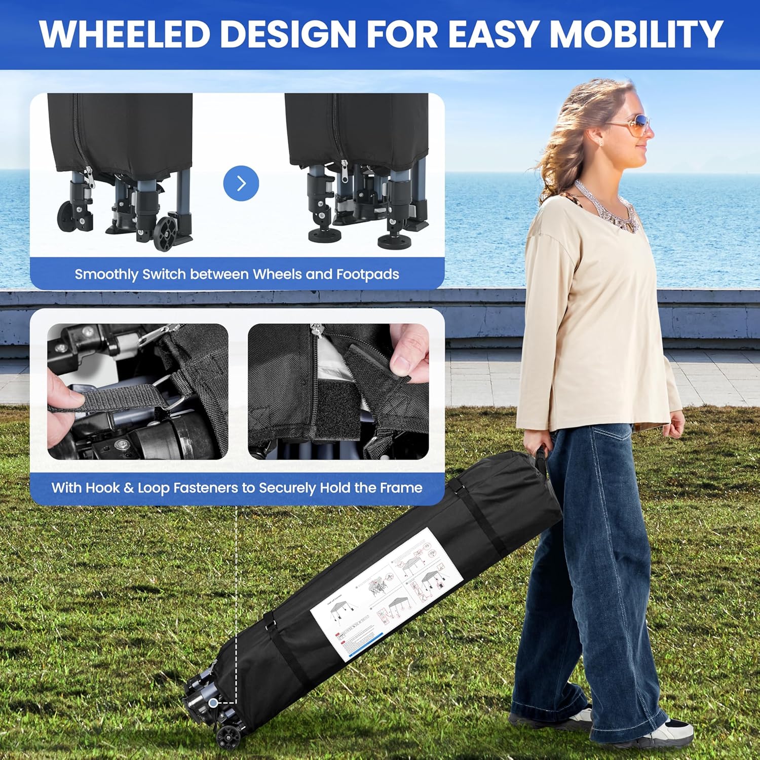 - Effortless Mobility: Two tent legs feature wheels, and you can lift another side of the tent and move it without dismantling. They can also be folded to become foot pads and ensure the tent stands stable
