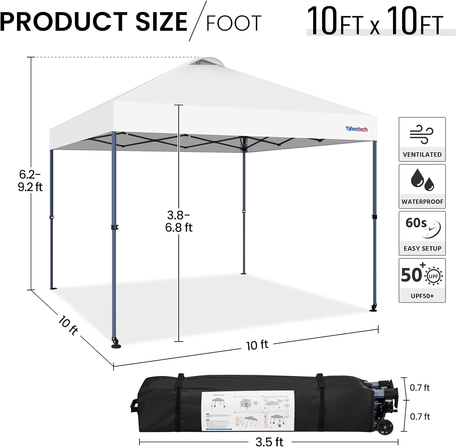 Yaheetech 10x10 Pop-up Canopy Tent w/ 2 Integrated Wheels for Mobility, Waterpoof & Heavy Duty, Instant Sun Shelter with Carry Bag, Weight Bags for Outdoor Camping Beach Patio Parties, White