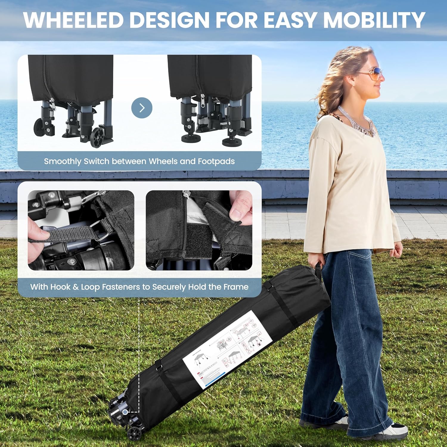 - Effortless Mobility: Two tent legs feature wheels, and you can lift another side of the tent and move it without dismantling. They can also be folded to become foot pads and ensure the tent stands stable
