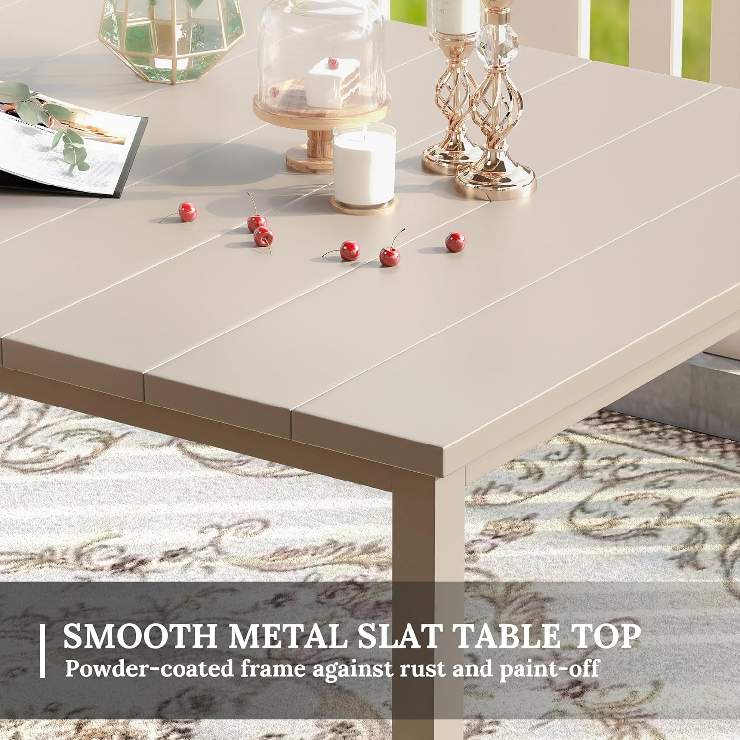 VICLLAX Patio Dining Set for 6, Outdoor Furniture Set Includes 63" Rectangle Patio Table and 6 Patio Sling Chairs, Outdoor Table and Chairs for Outsides, Sandshell Color Tabletop and Fabric