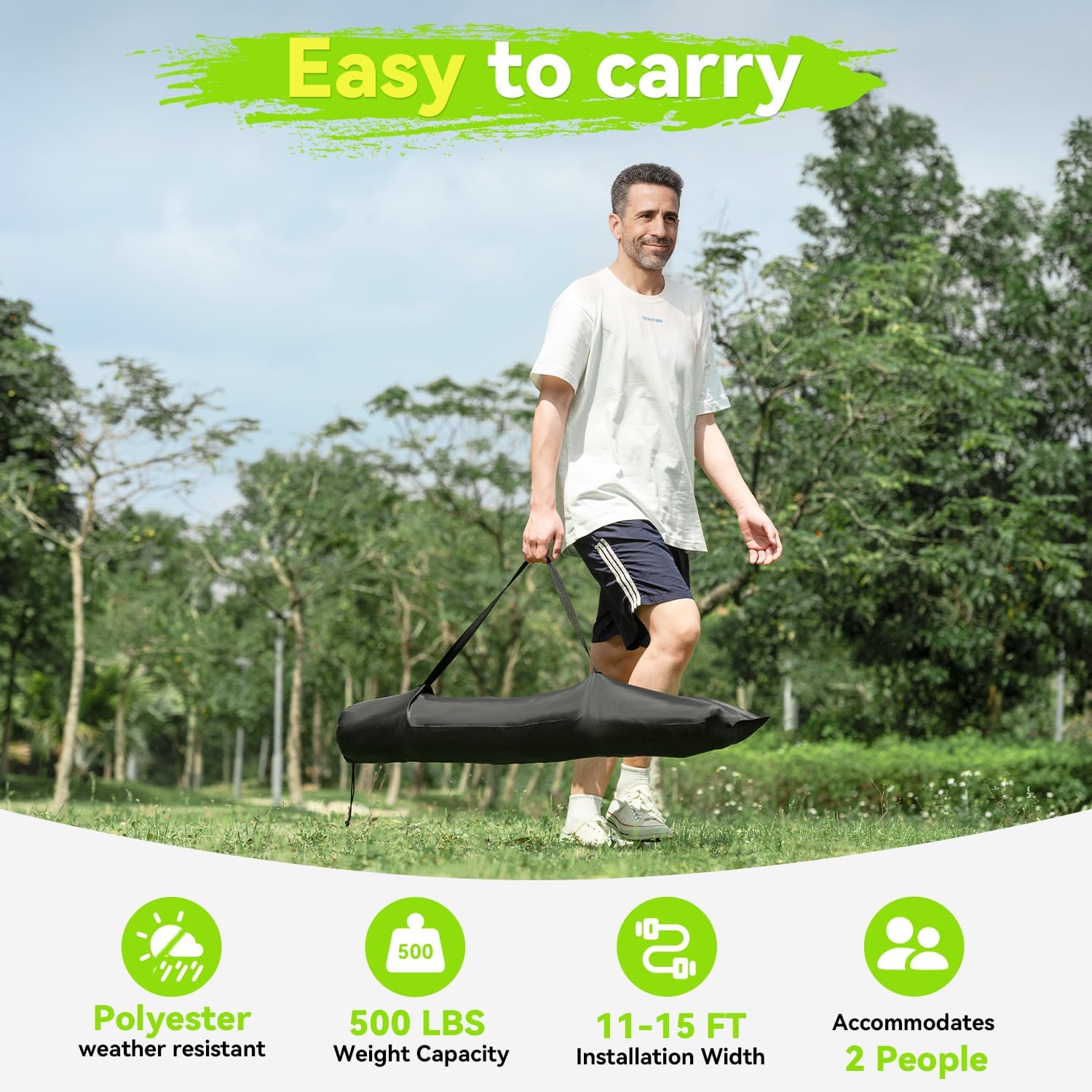 - Perfect Hammock Hanging Distance:For optimal comfort and to prevent sagging, we recommend an 11-15 ft hanging distance between trees or supports. This ensures a taut, secure lounging space while keeping you off the ground. Compatible with most standard hammock stands.